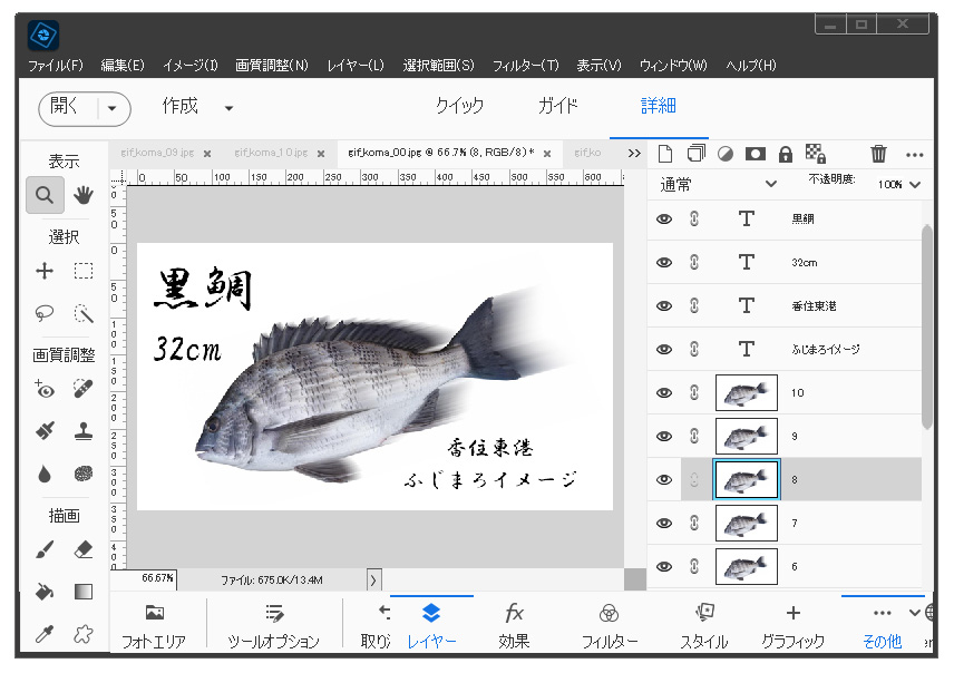サイズ変更と文字入れにはAdobe Photoshop Elementsというソフトウェアを使用しました。ここではAdobe Photoshop Elements使い方は説明しません。編集の結果のみ掲示します。