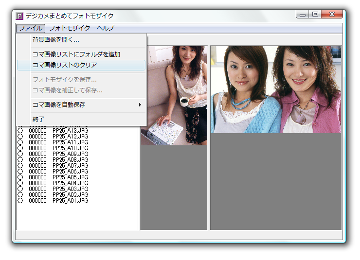 デジカメまとめてフォトモザイクはこの様な画面です。