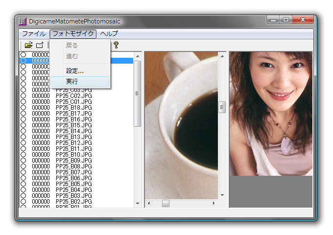 ”デジカメまとめてフォトモザイク”はこのような画面です。![]() |