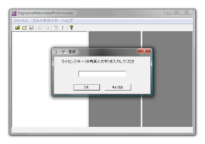 ユーザー登録ダイアログが表示されますから、ライセンスキーを入力してください。![]() |