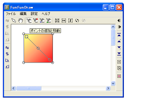 「ポイントの追加と移動」モードで図形の頂点にあるポイントをドラッグすると、ポイントが移動して図形が変形しますし、