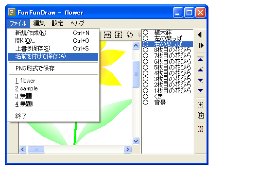 「名前を付けて保存」でFunFunDraw独自の形式で保存できますし、