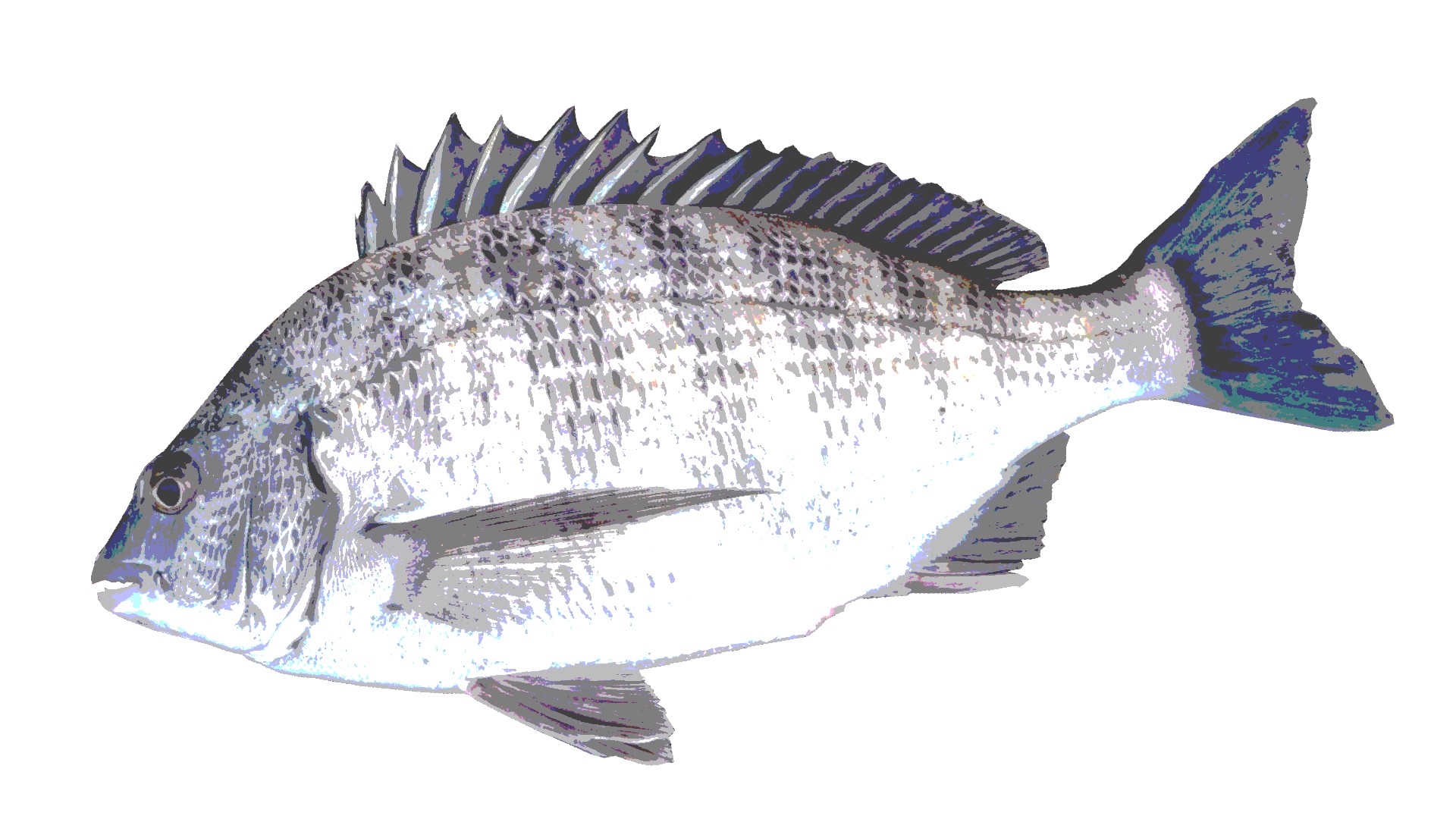 魚の写真を取り込んで、魚の輪郭に沿って切り抜く方法を説明しています。マウス操作で点を追加することで伸縮自在な多角形を作成し、軽快な操作で魚の輪郭を取ることができます。操作に慣れてしまえば複雑な形でも短時間で処理できます。