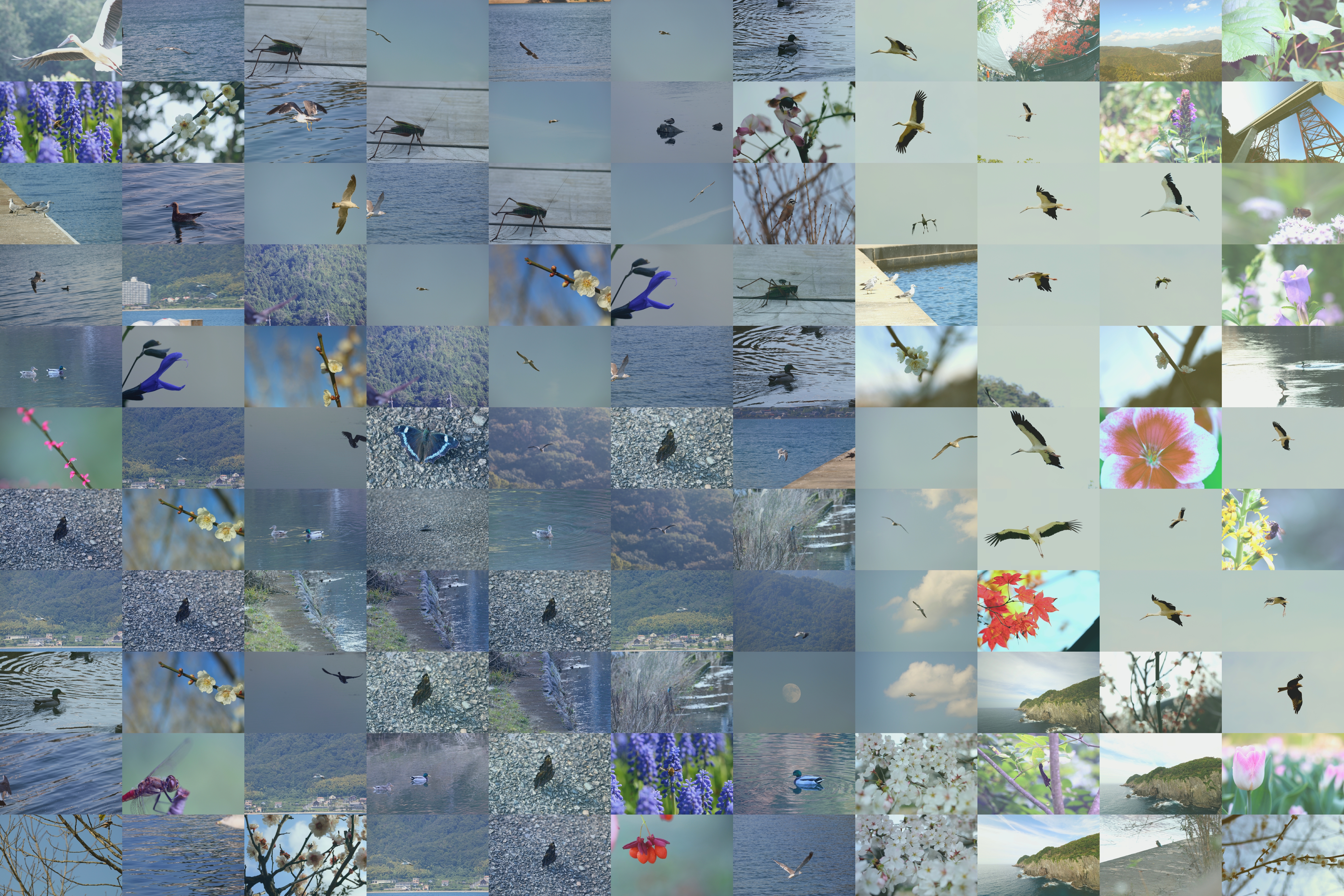 編集の一例を示します。約1万枚の写真を重複なく各一回ずつ使って作ったフォトモザイクです。画像をクリックすることで実サイズの画像を確認することができます。