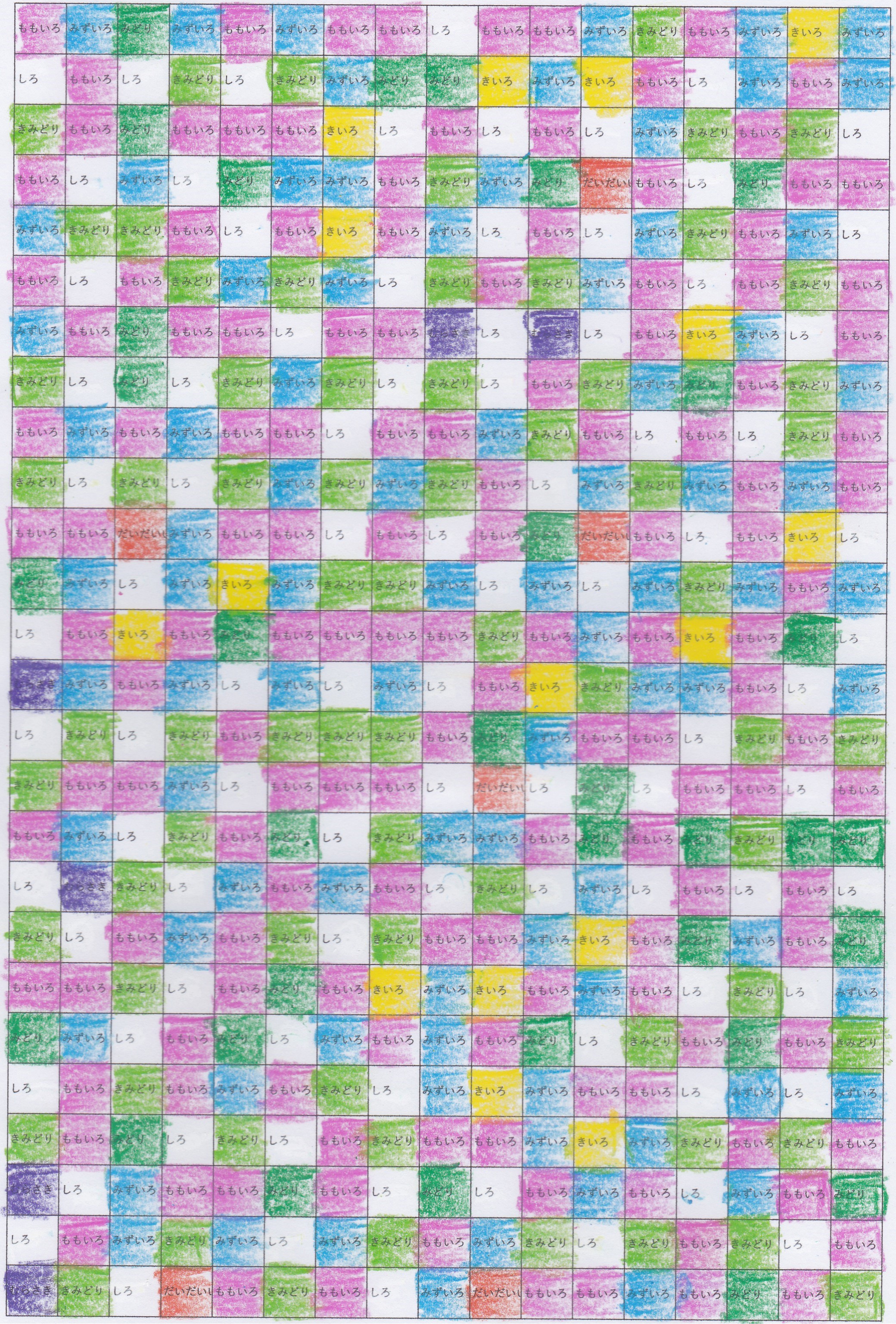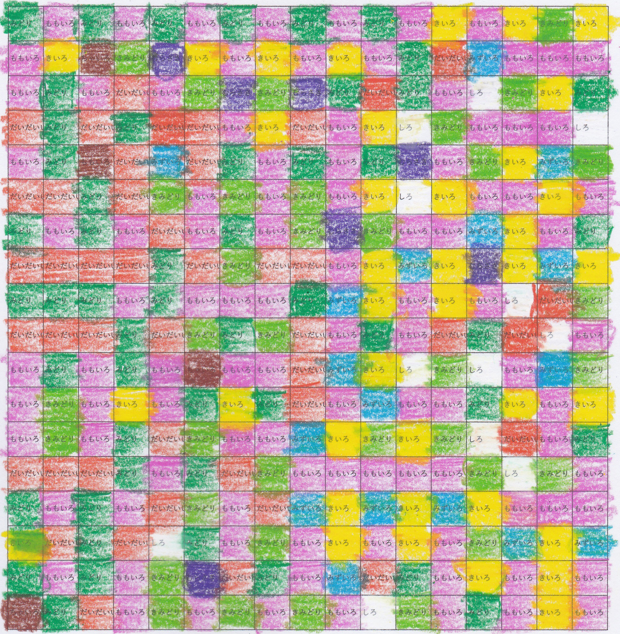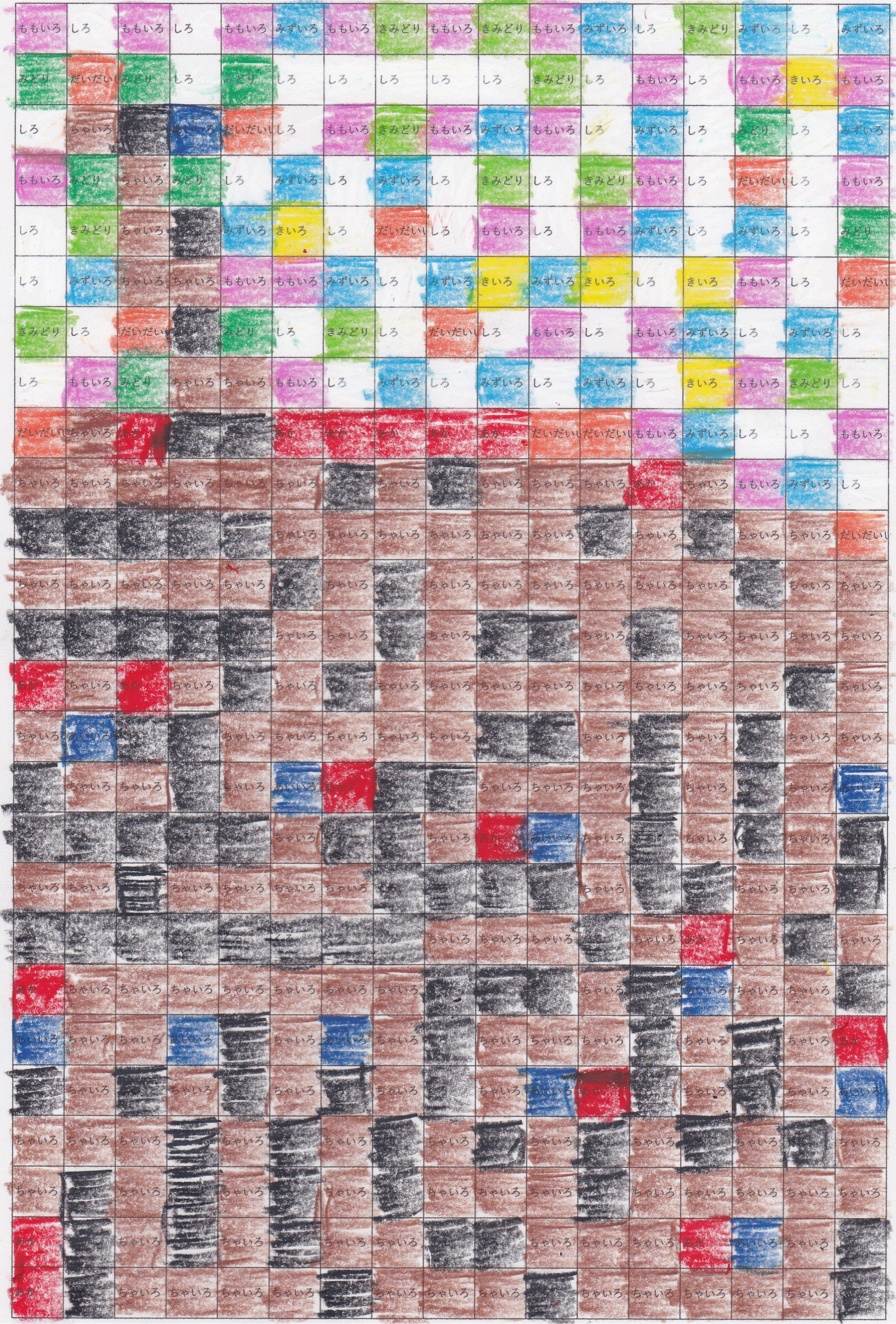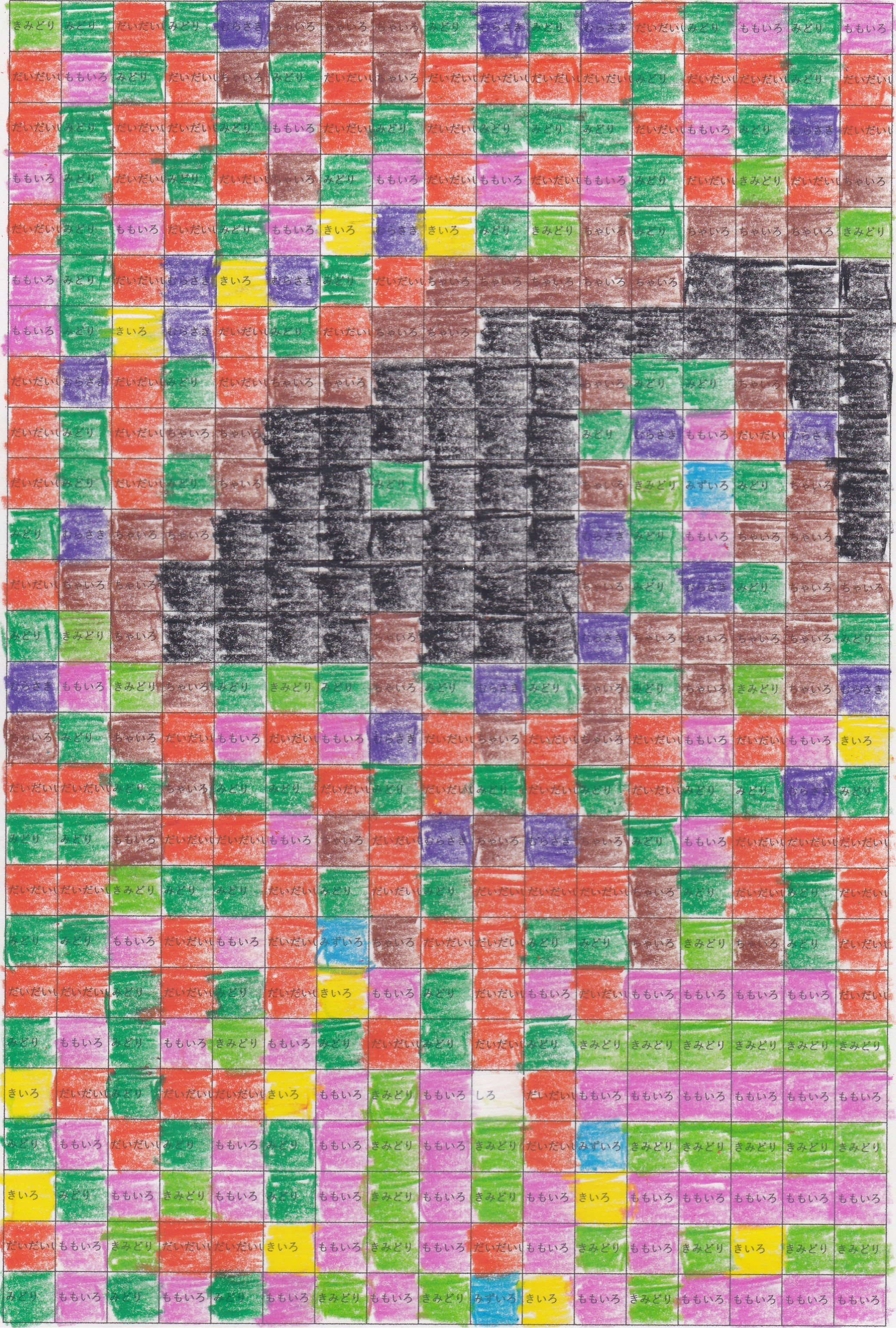 (図10)Excelで作った格子を色鉛筆で塗り潰して作ったモザイクアート