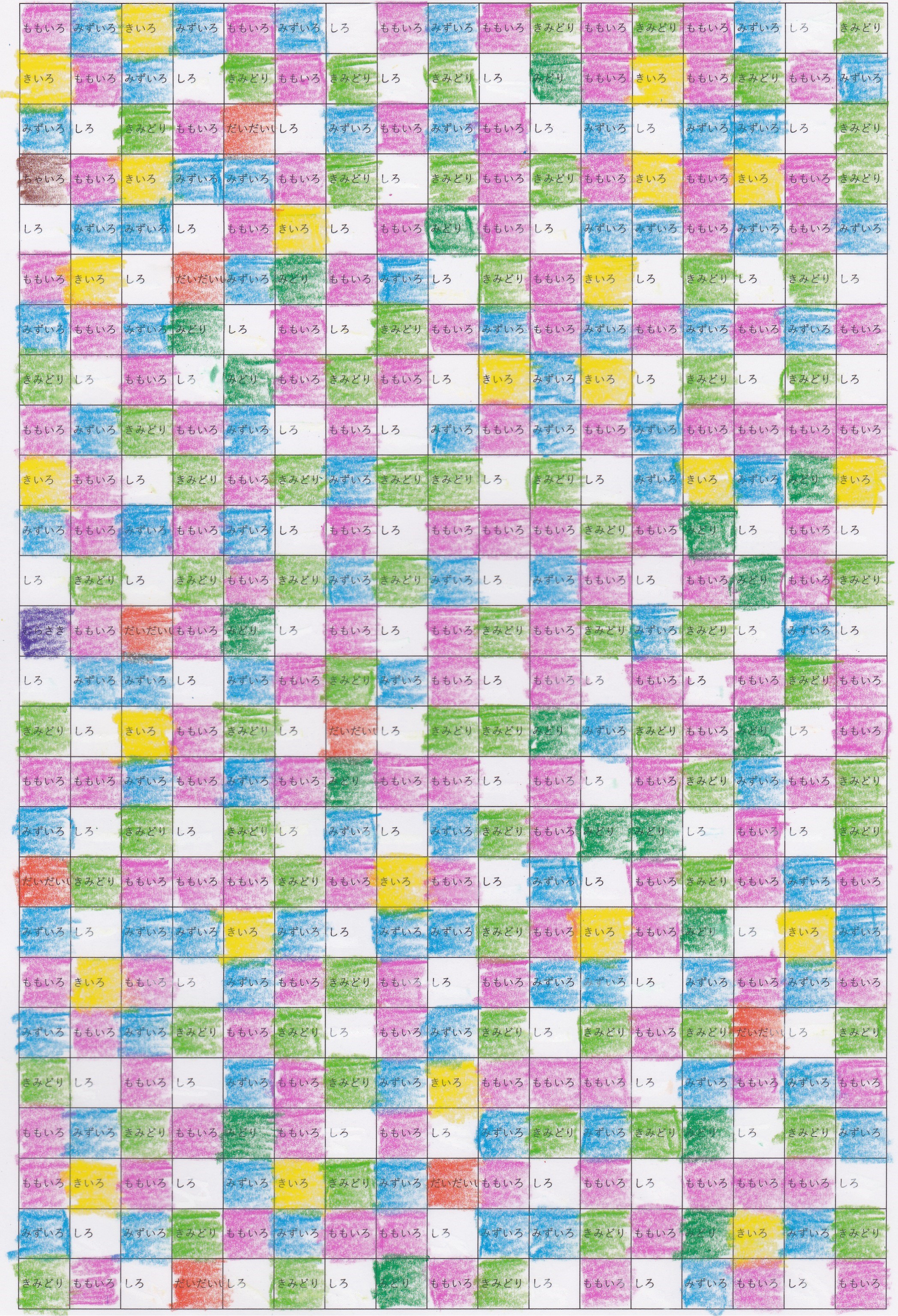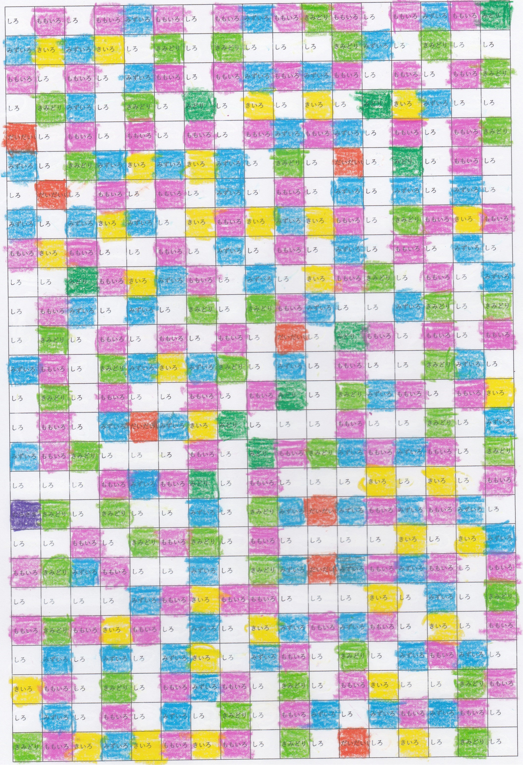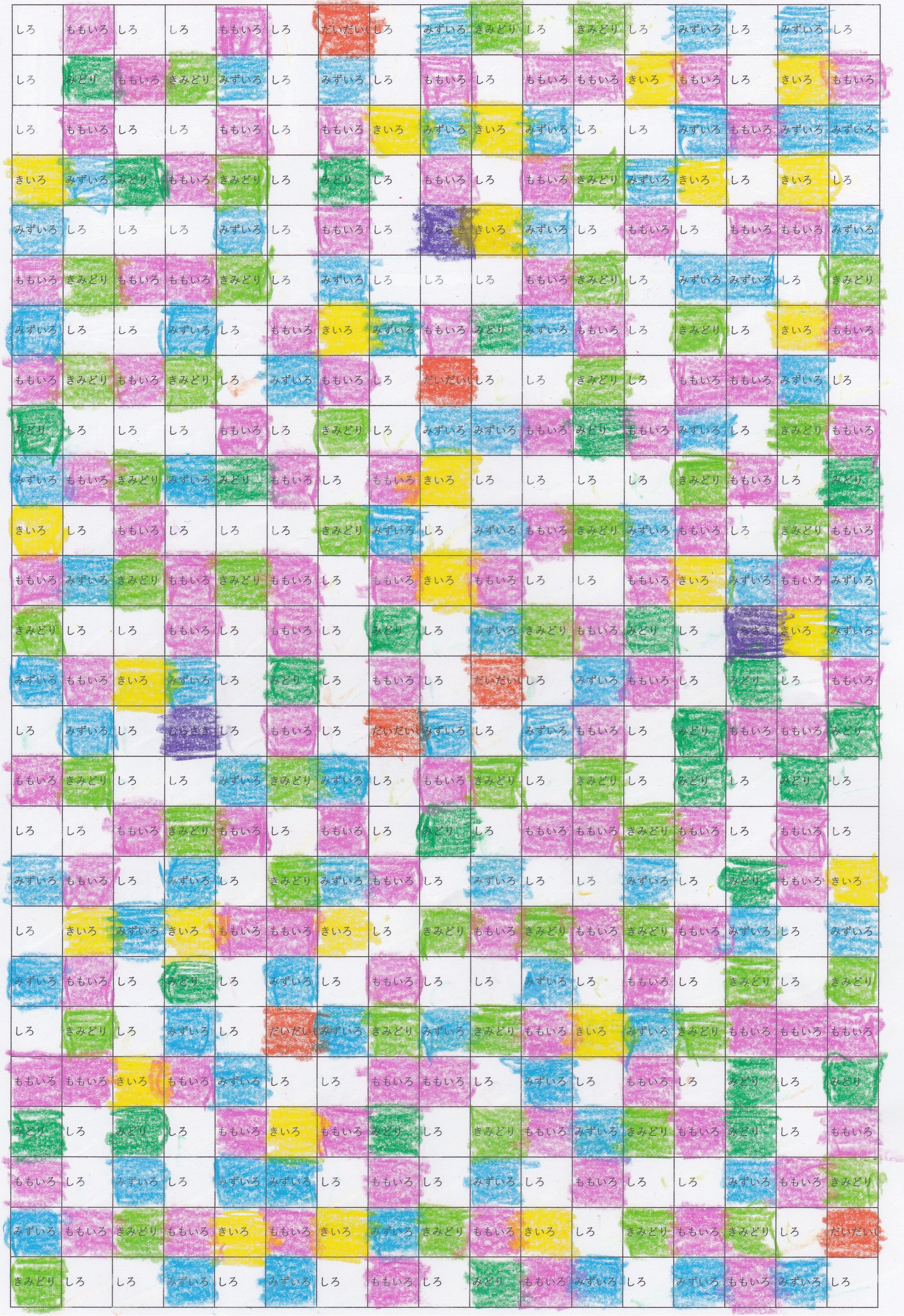 (図10)Excelで作った格子を色鉛筆で塗り潰して作ったモザイクアート