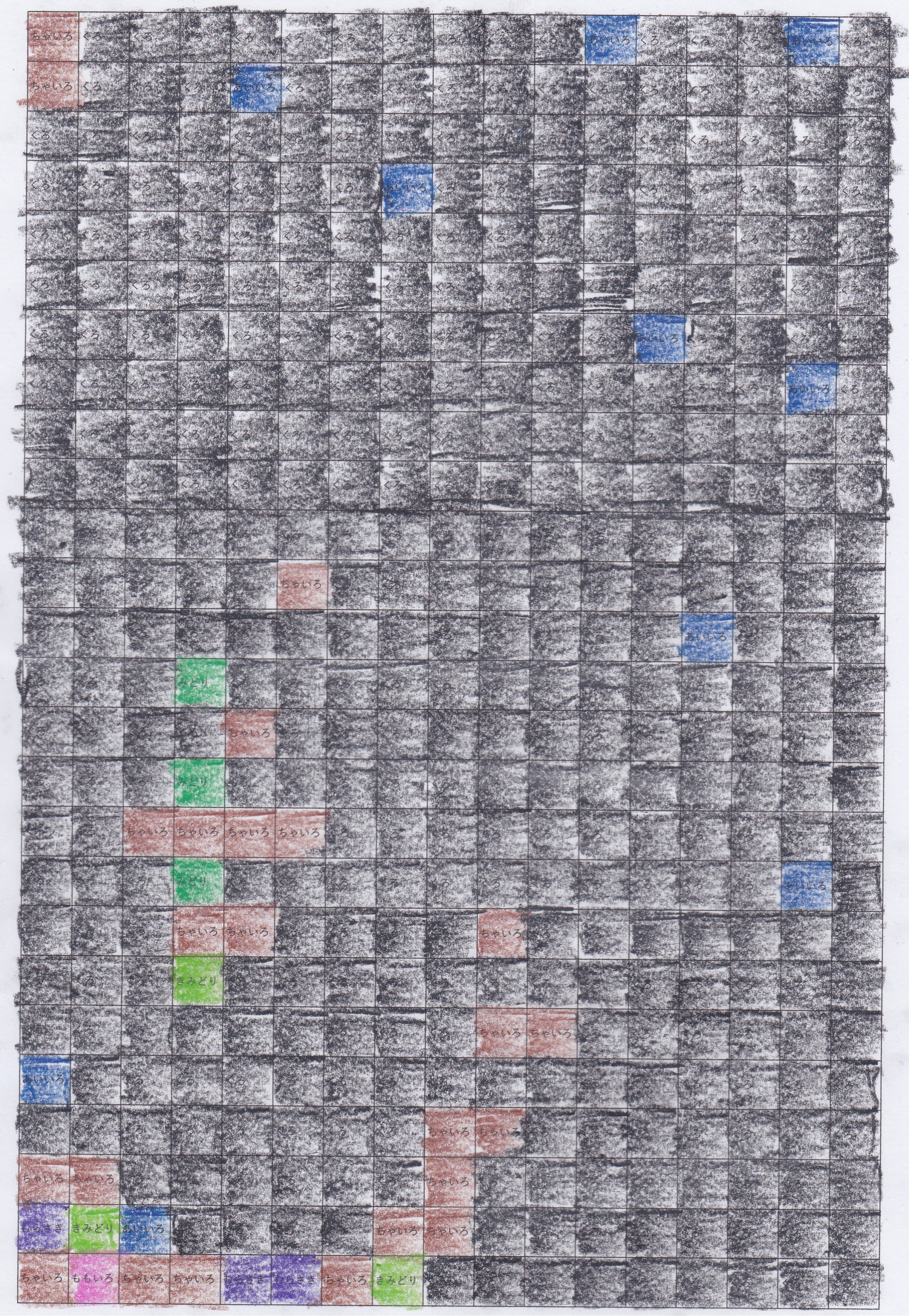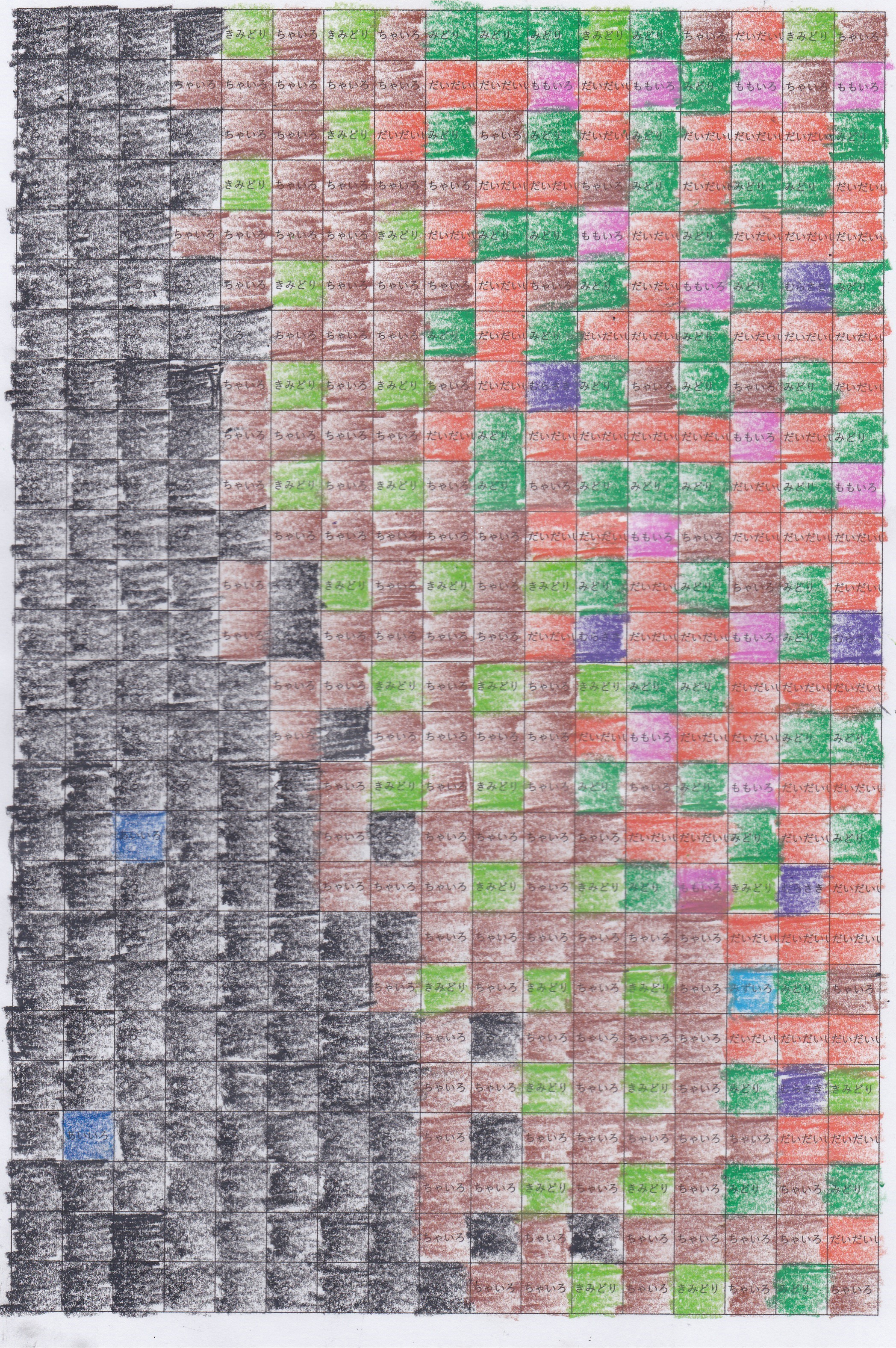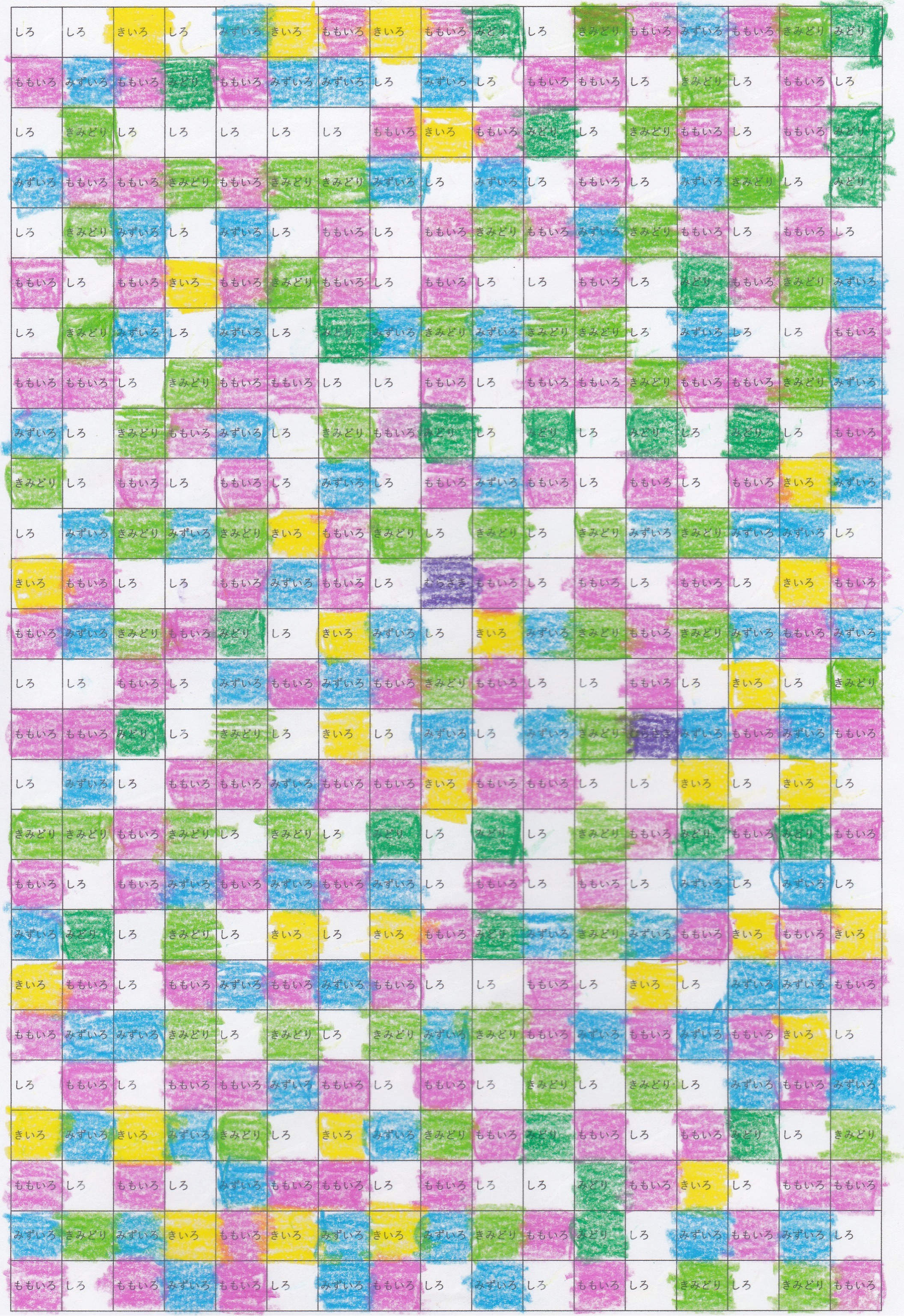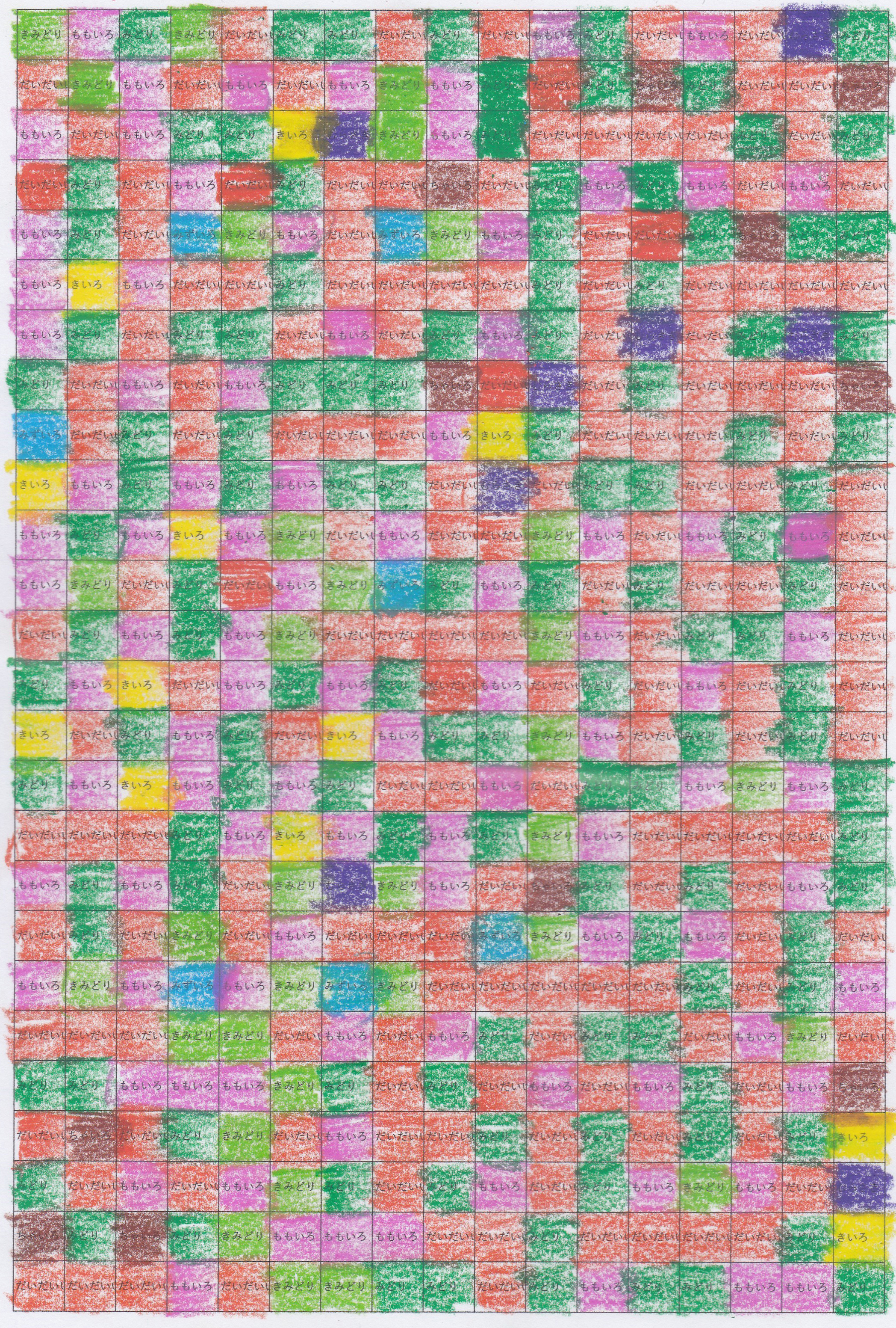 (図10)Excelで作った格子を色鉛筆で塗り潰して作ったモザイクアート