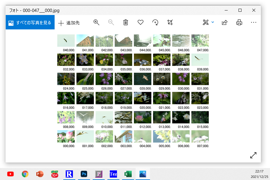 コマ画像として使用する写真を準備します。一眼レフタイプのデジタルカメラで撮影した写真1万枚を一つのフォルダーにまとめて保存しておきます。