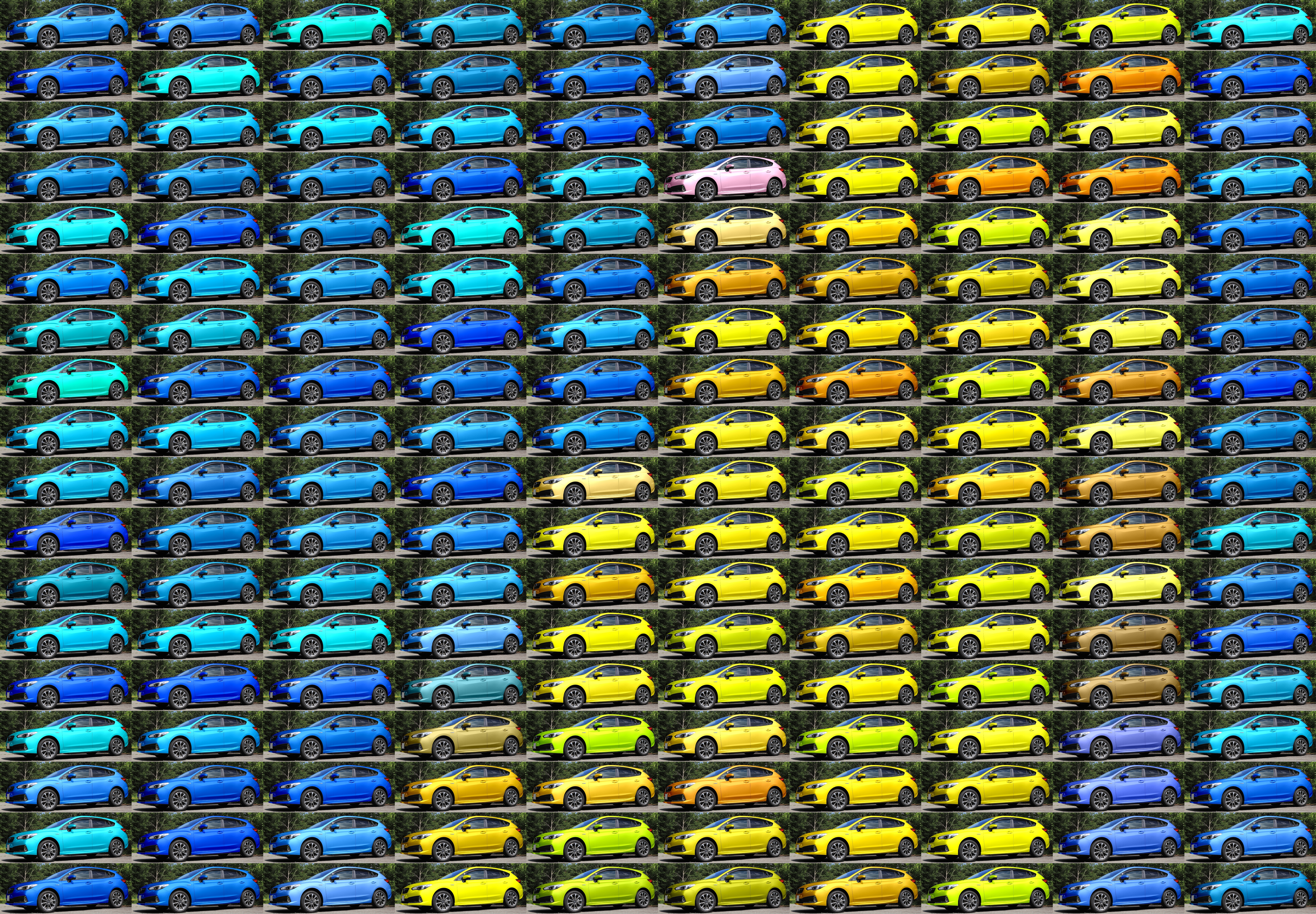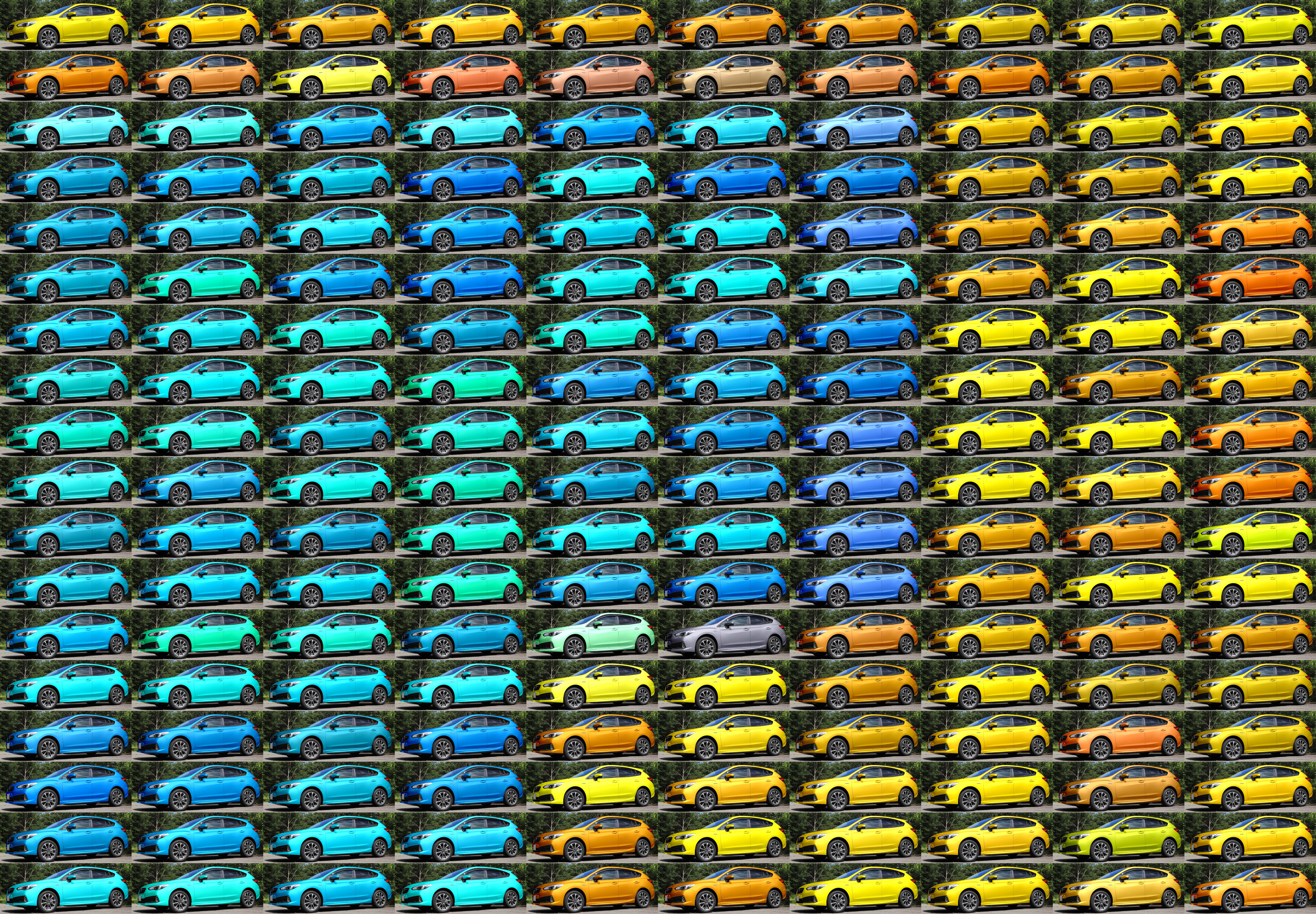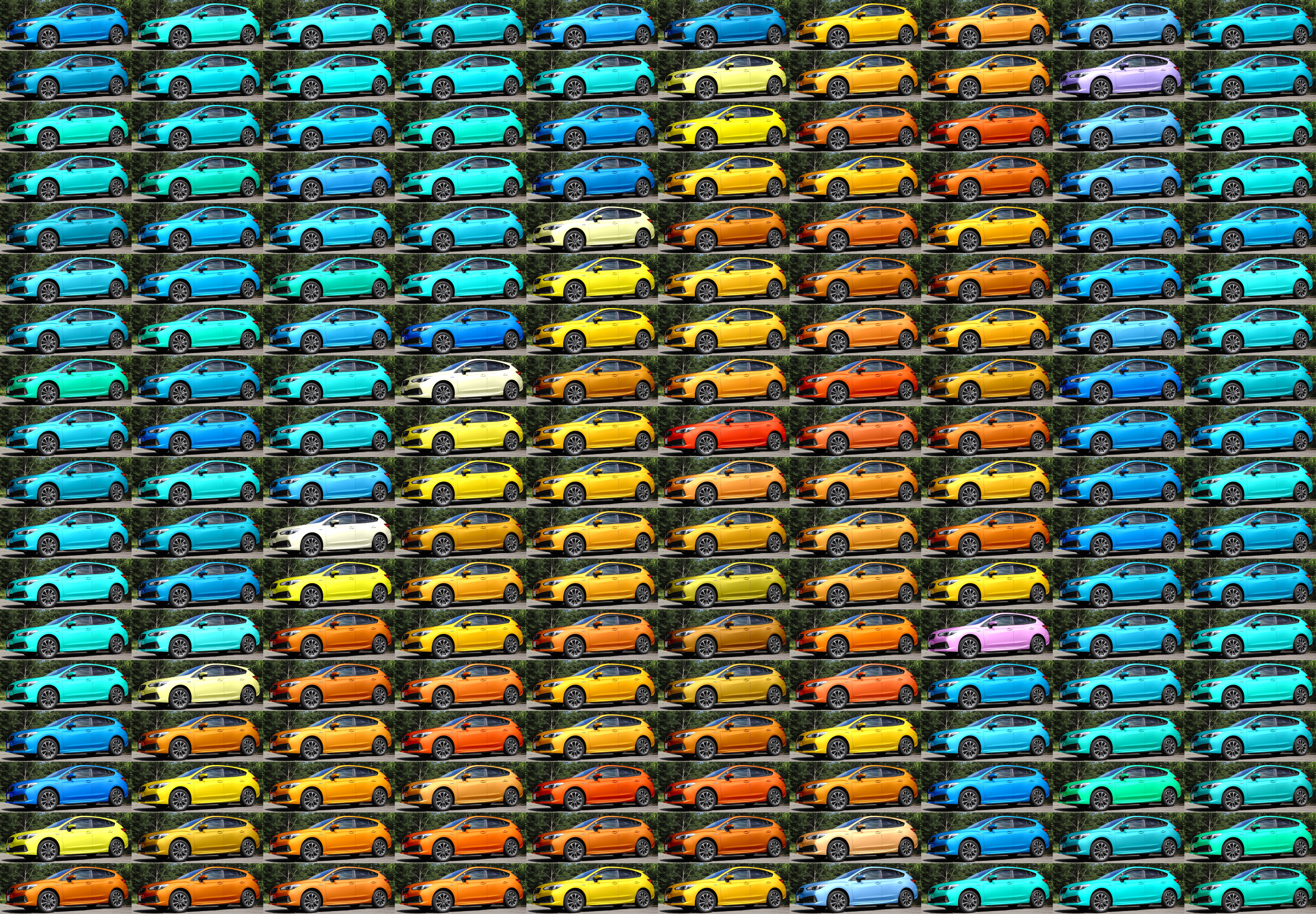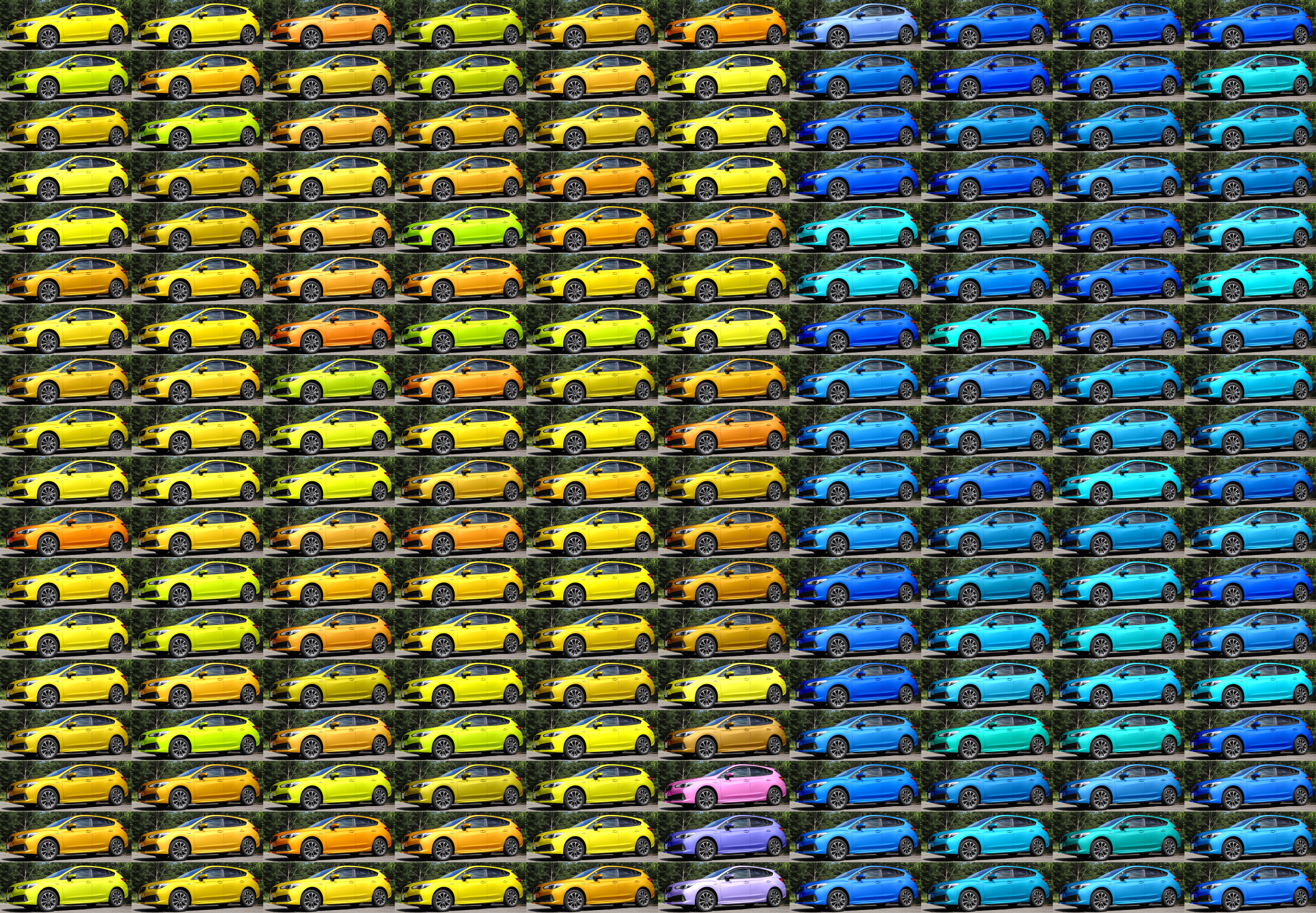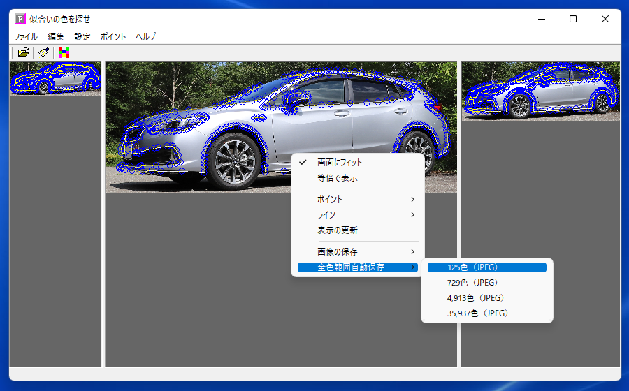 2014年ごろに私が開発した画像処理ソフト「似合いの色を探せ」でインプレッサの車体部分の色を塗り替え125色の車の画像を作ります。