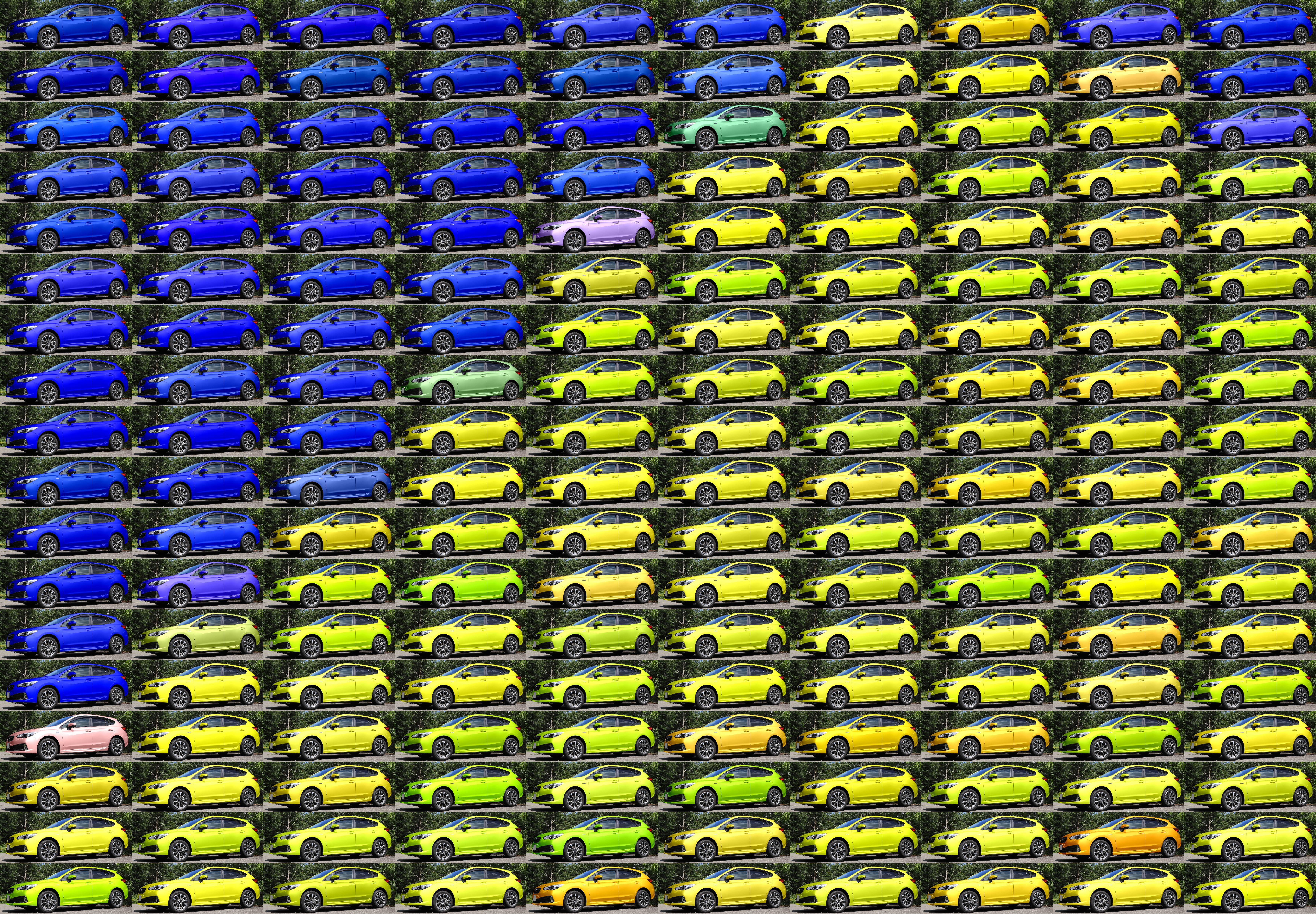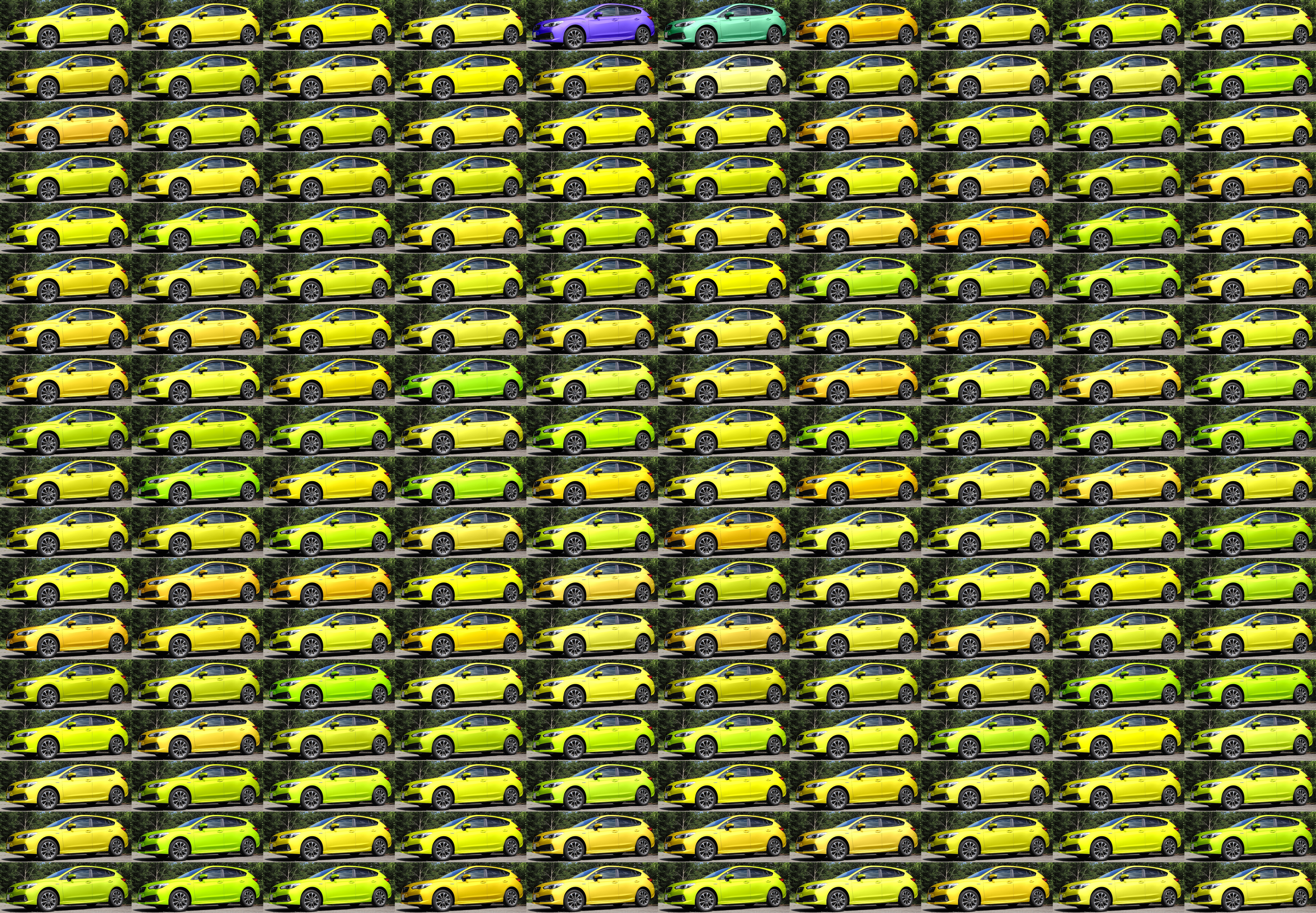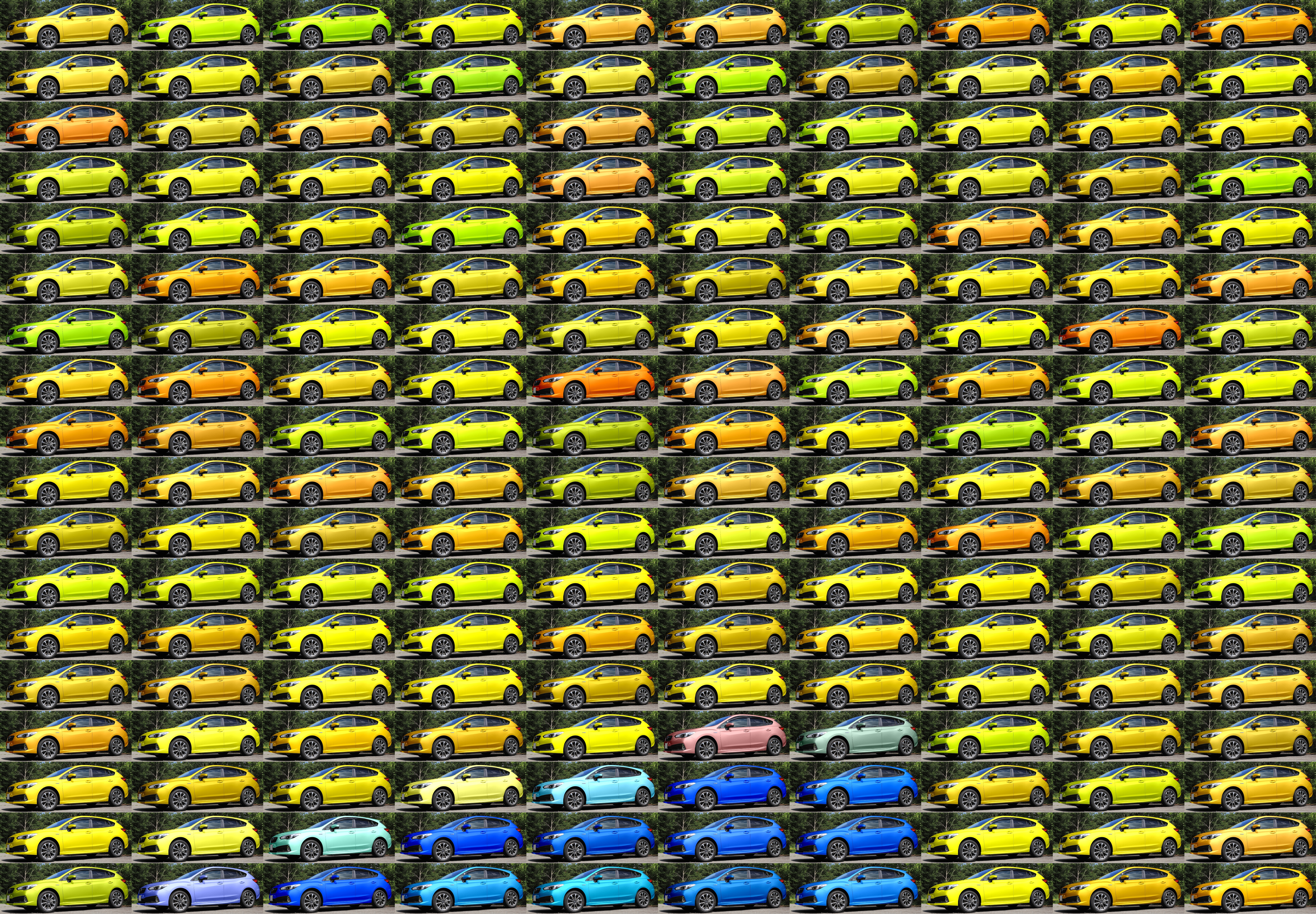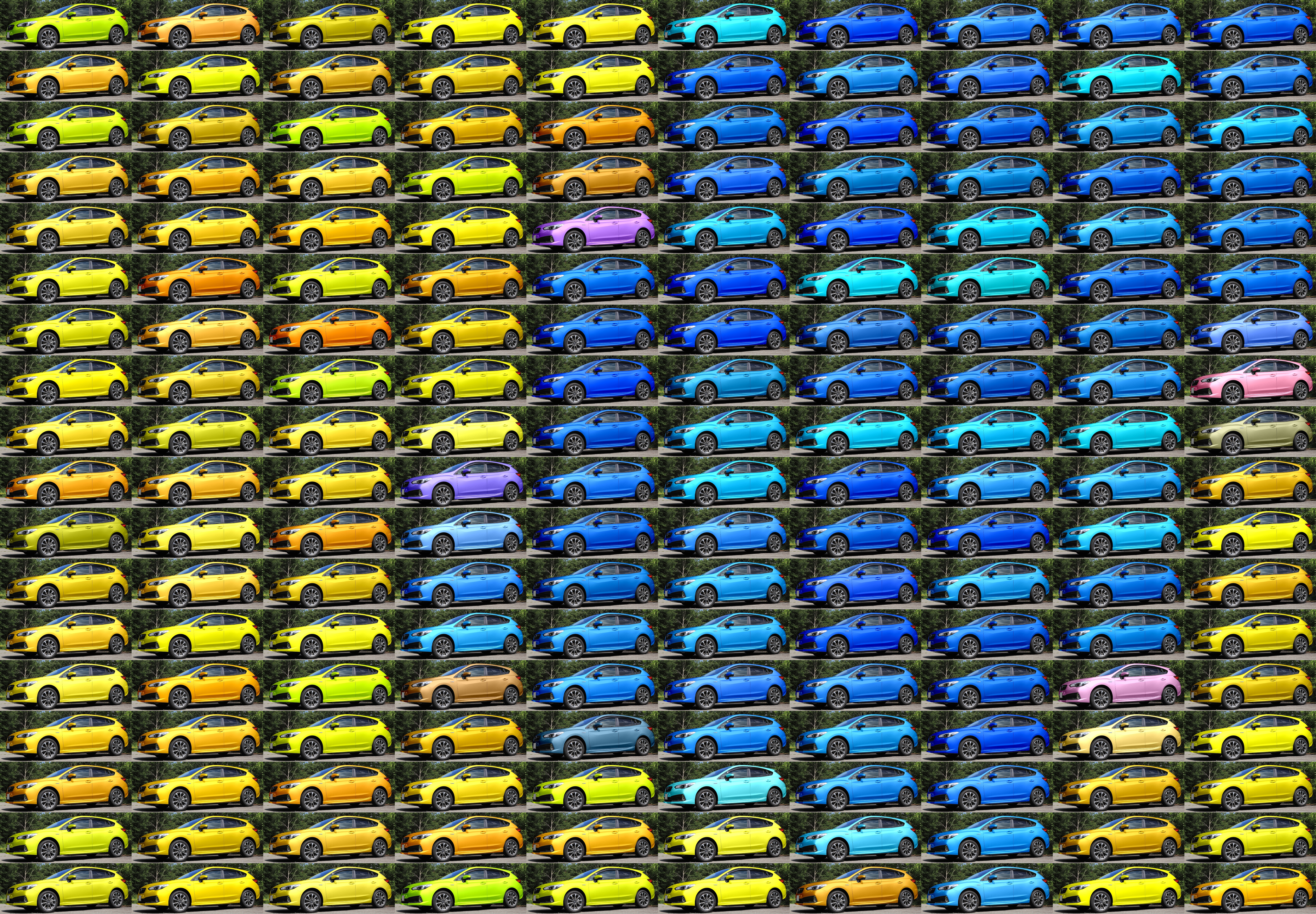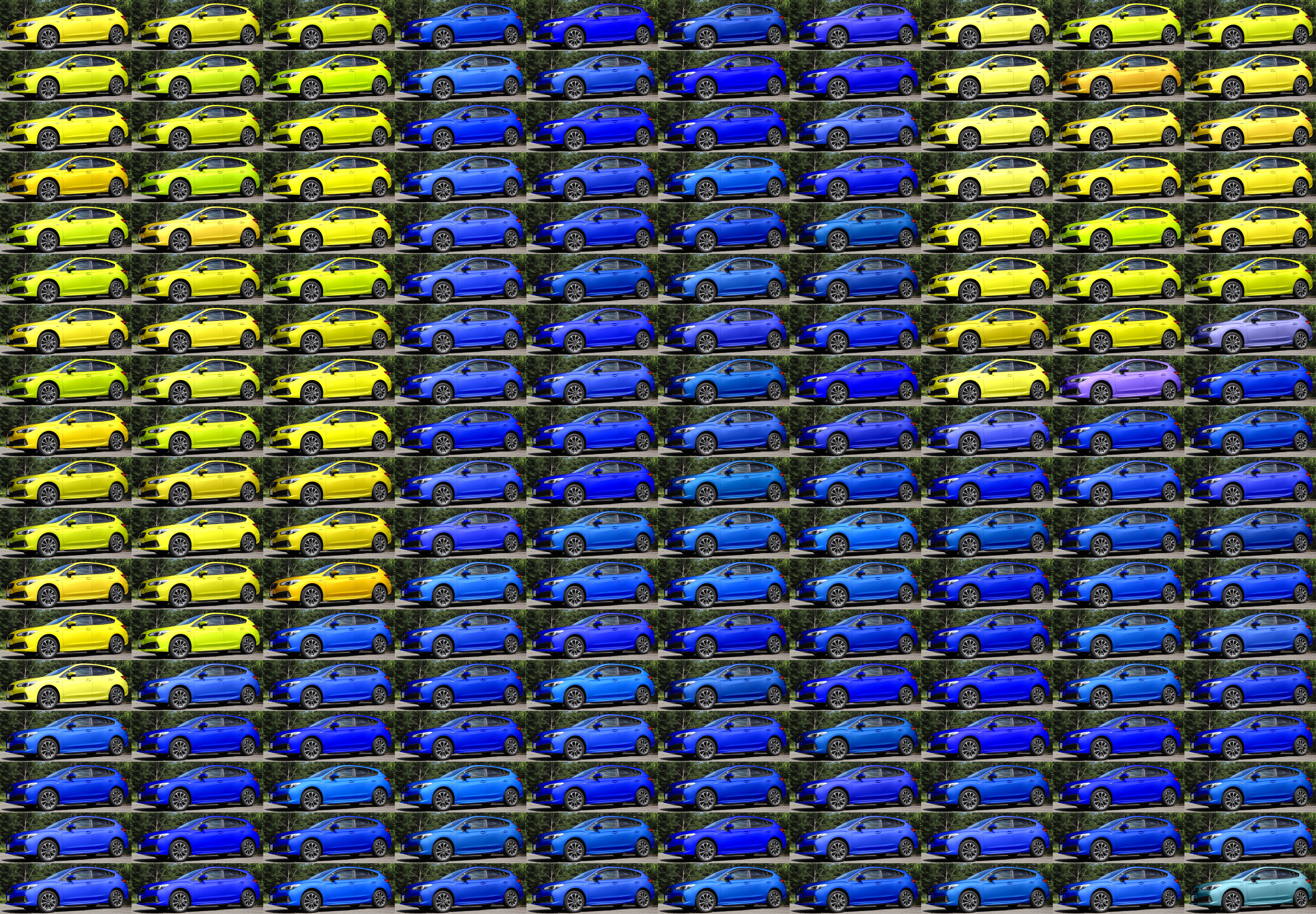 2014年ごろに私が開発した画像処理ソフト「似合いの色を探せ」でインプレッサの車体部分の色を塗り替え125色の車の画像を作ります。
