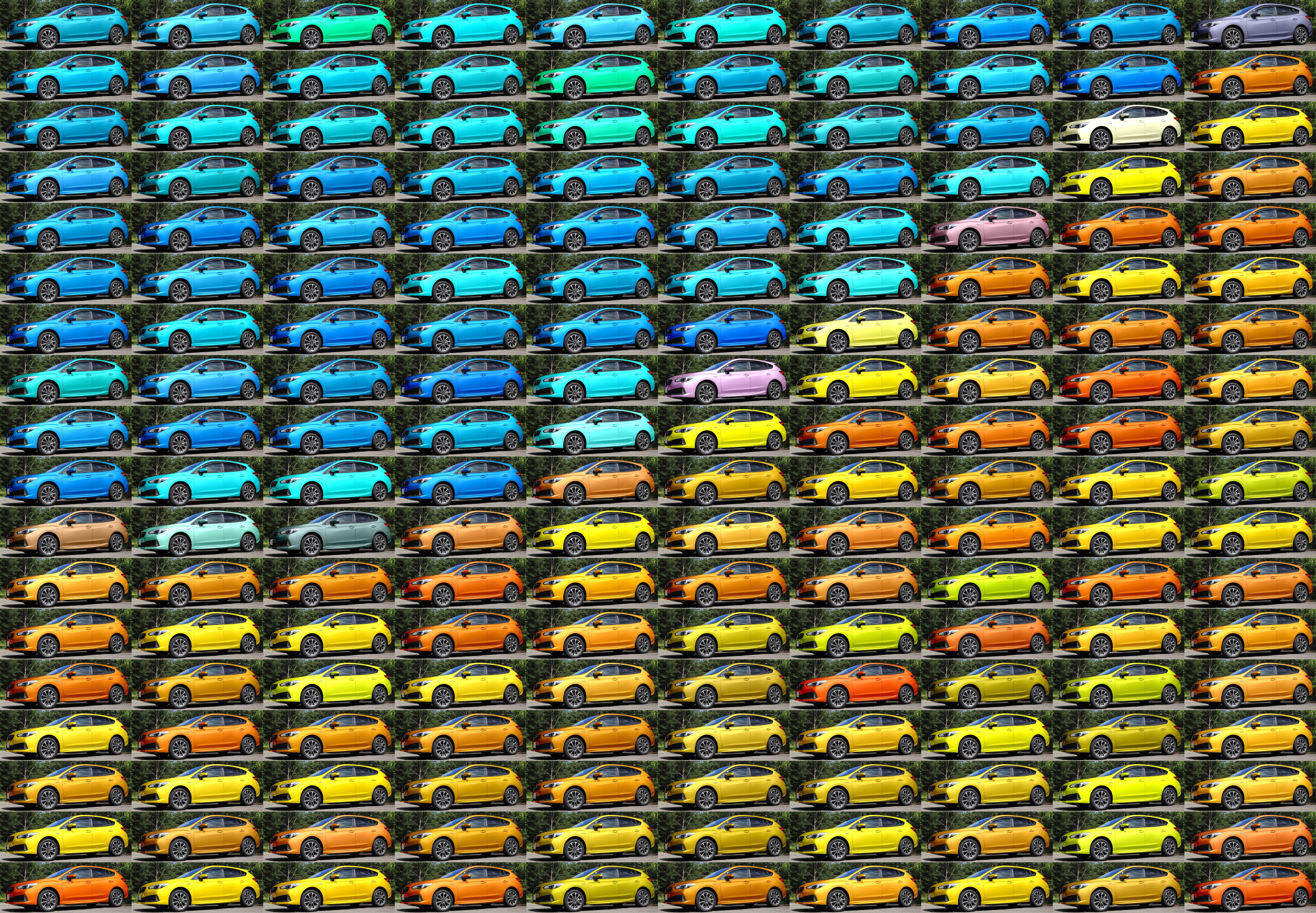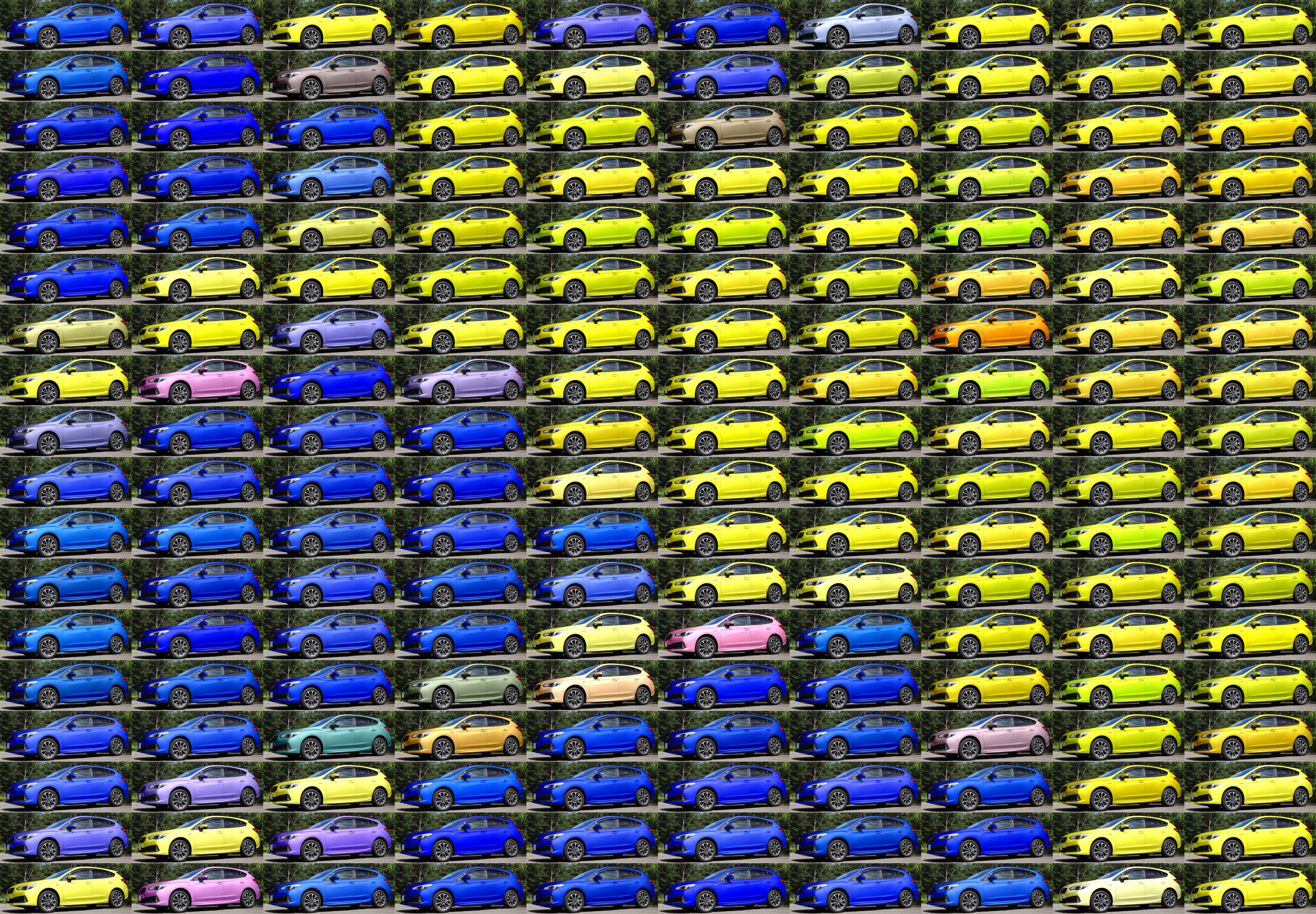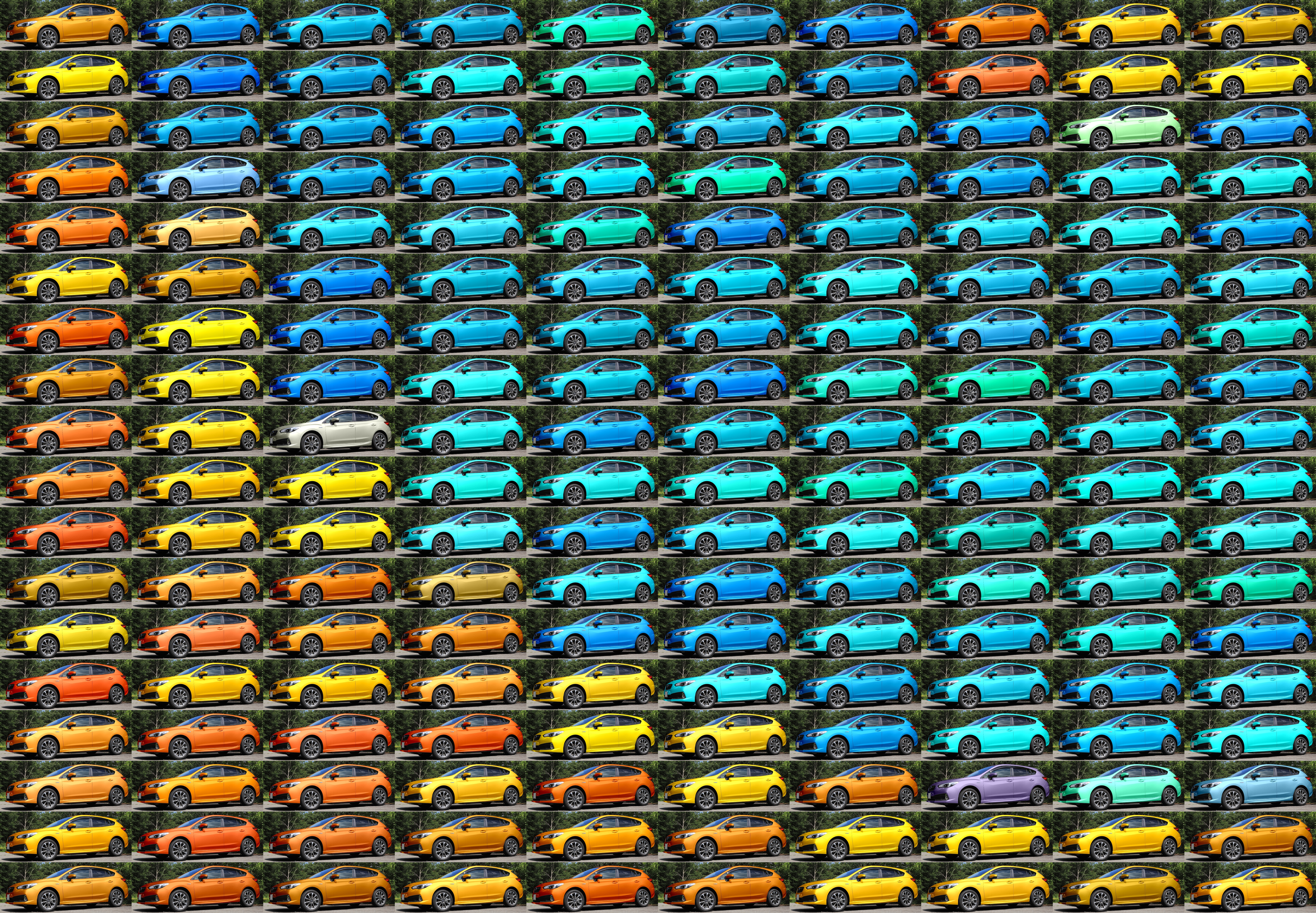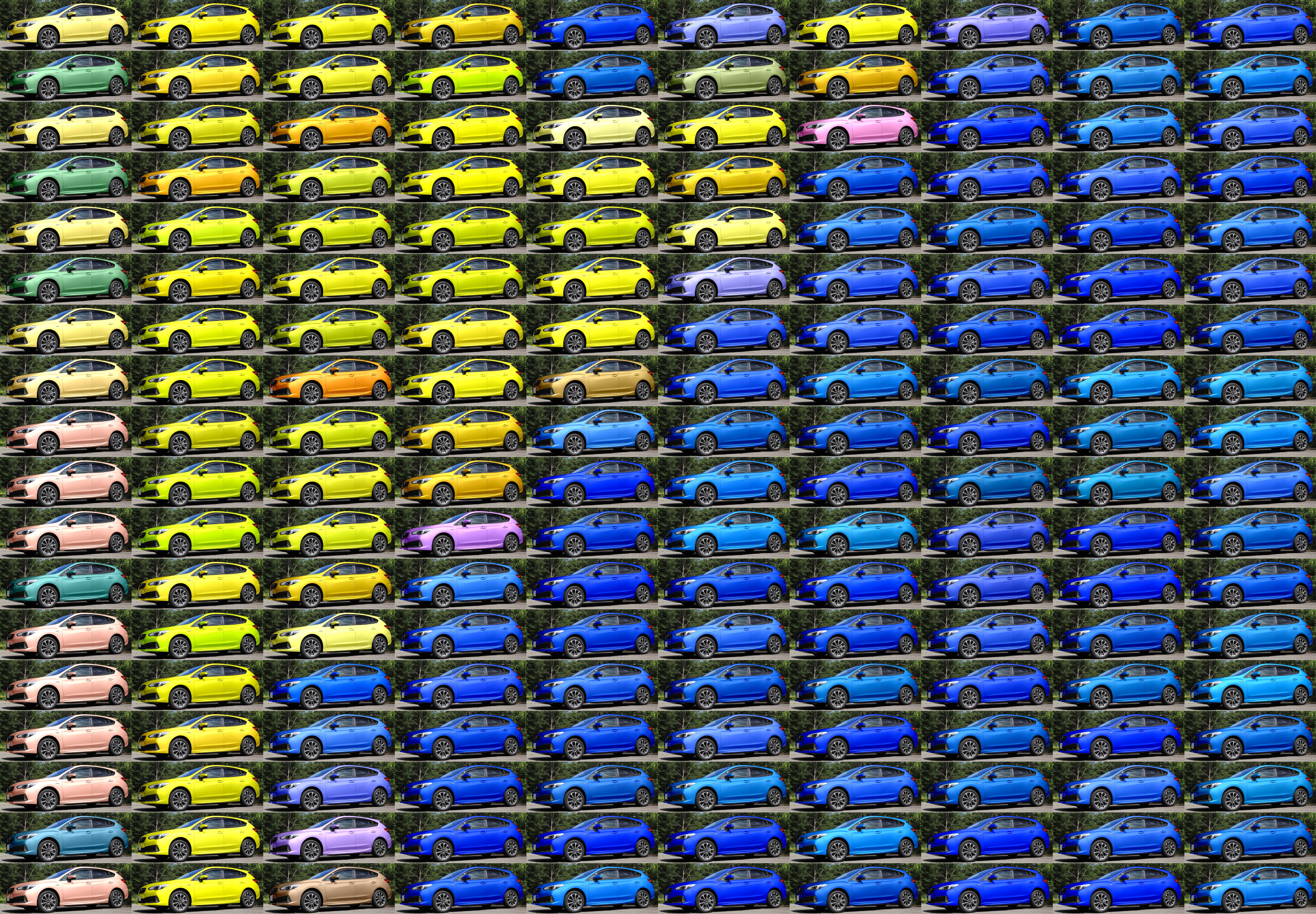 2014年ごろに私が開発した画像処理ソフト「似合いの色を探せ」でインプレッサの車体部分の色を塗り替え125色の車の画像を作ります。