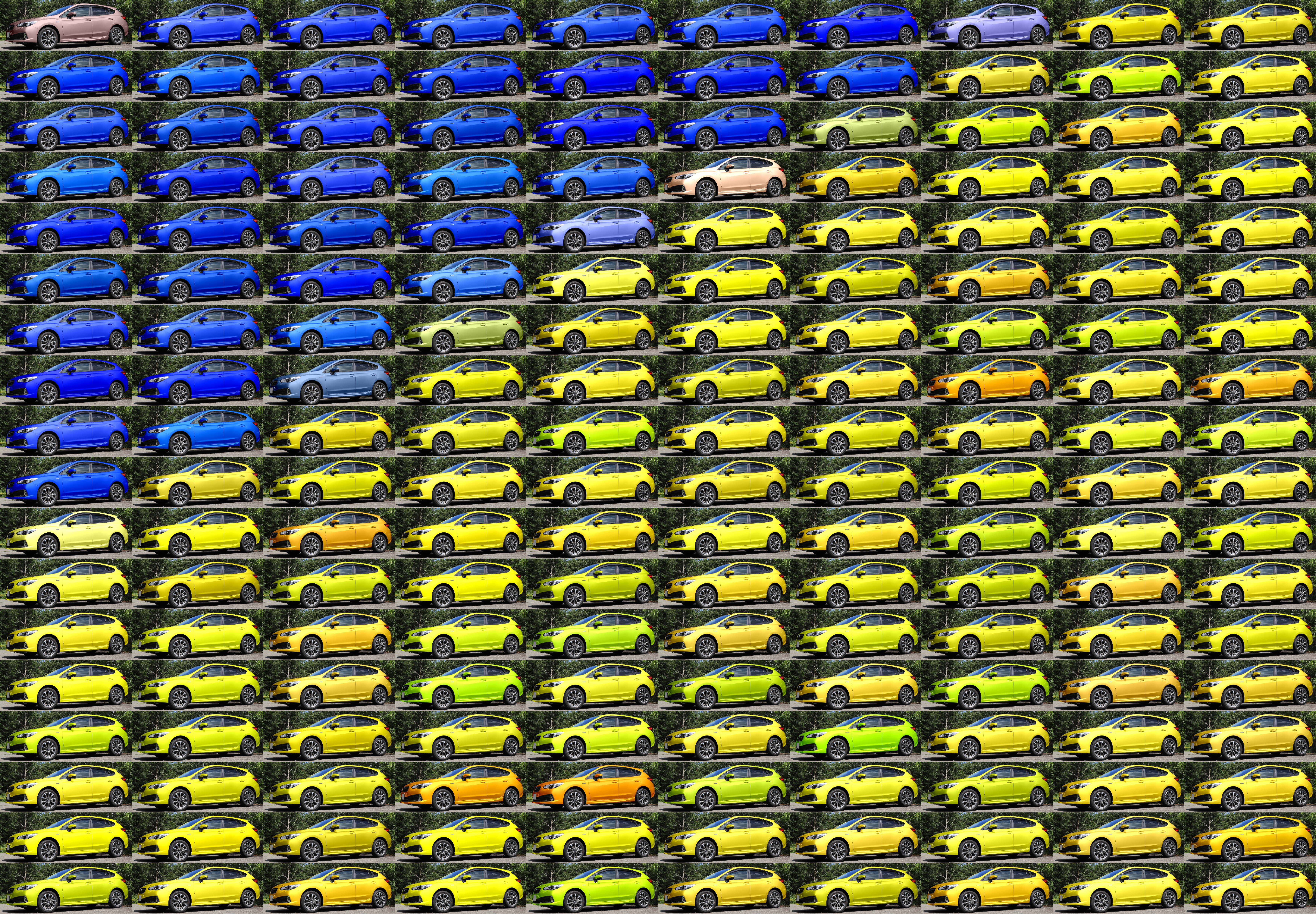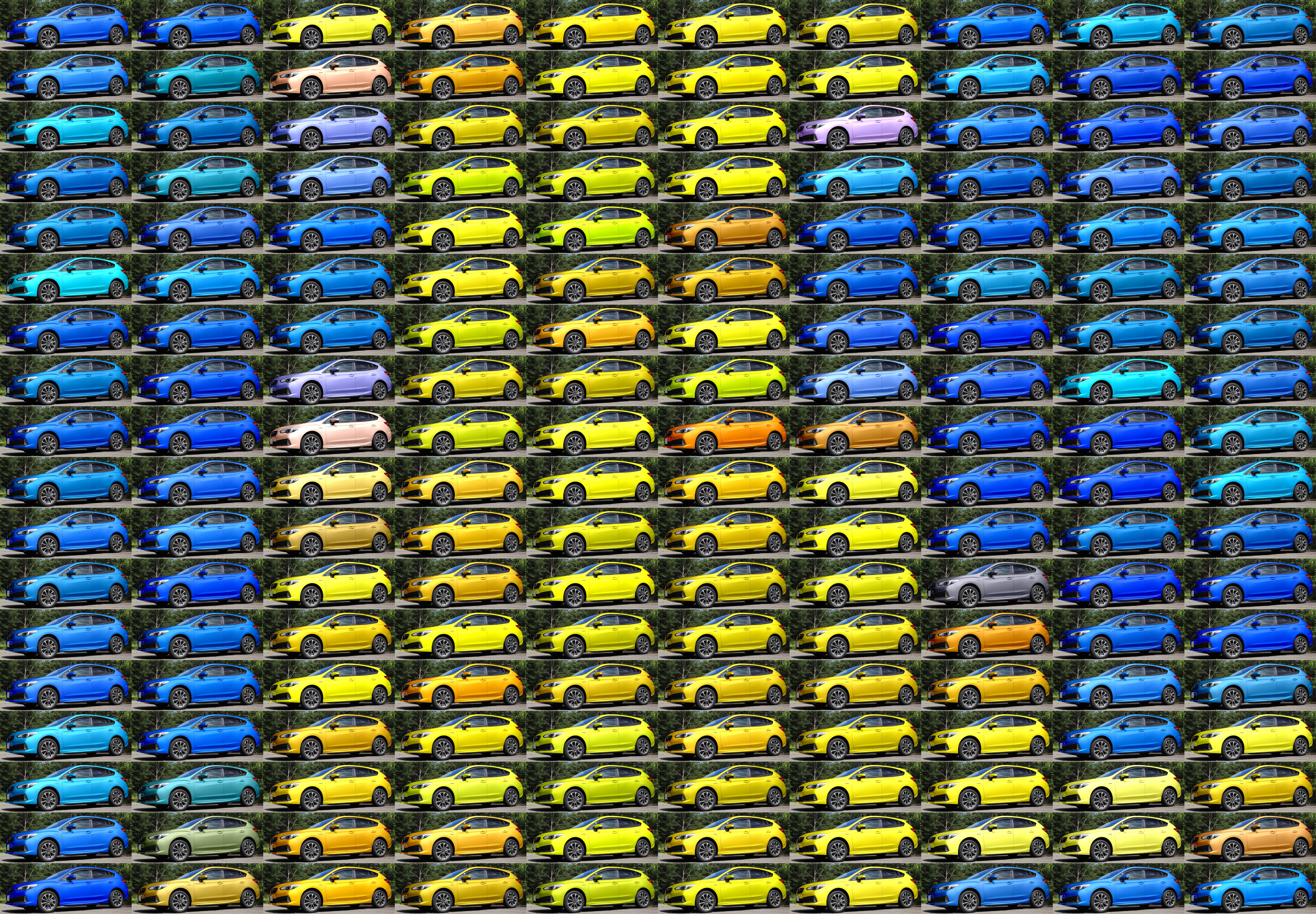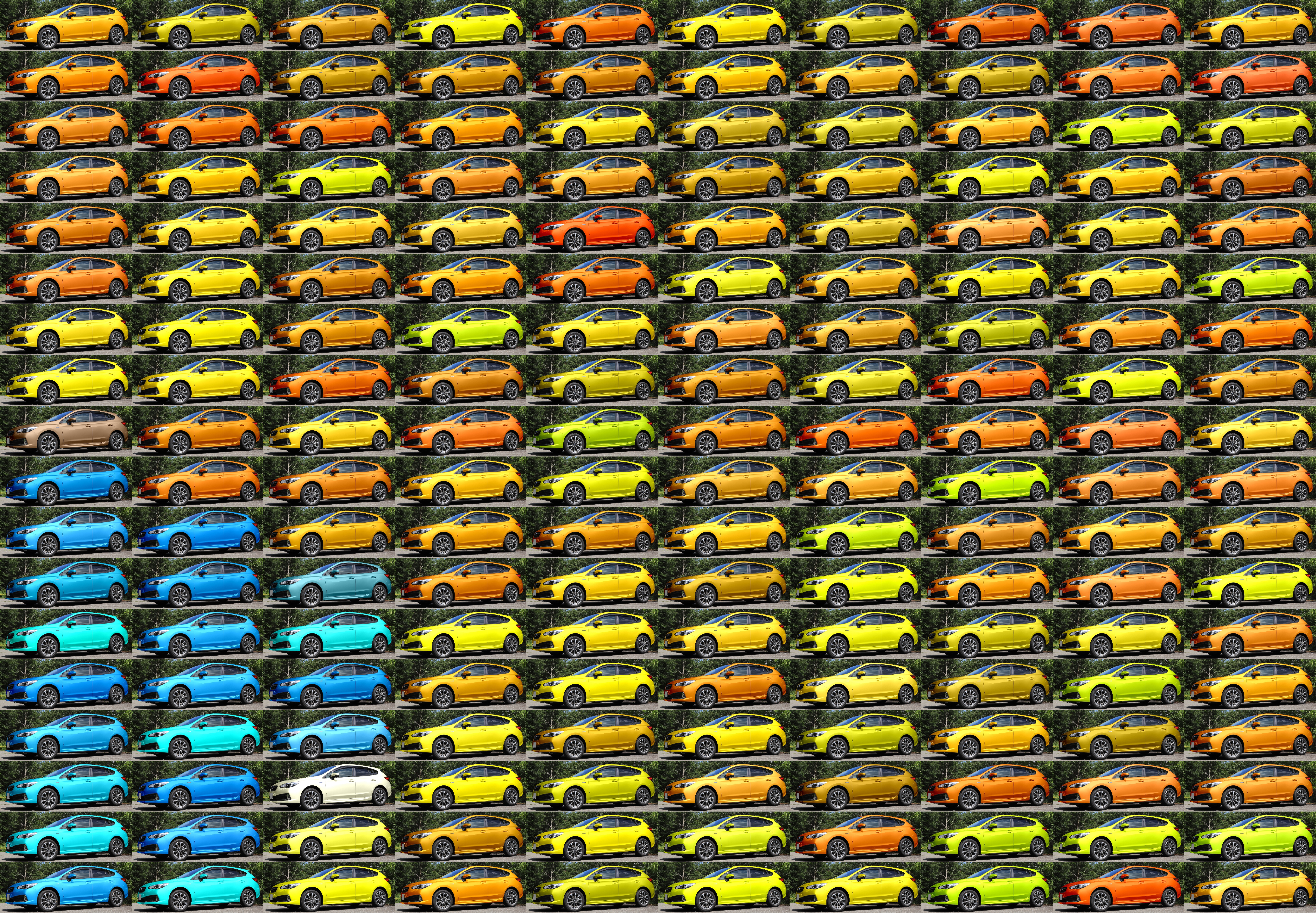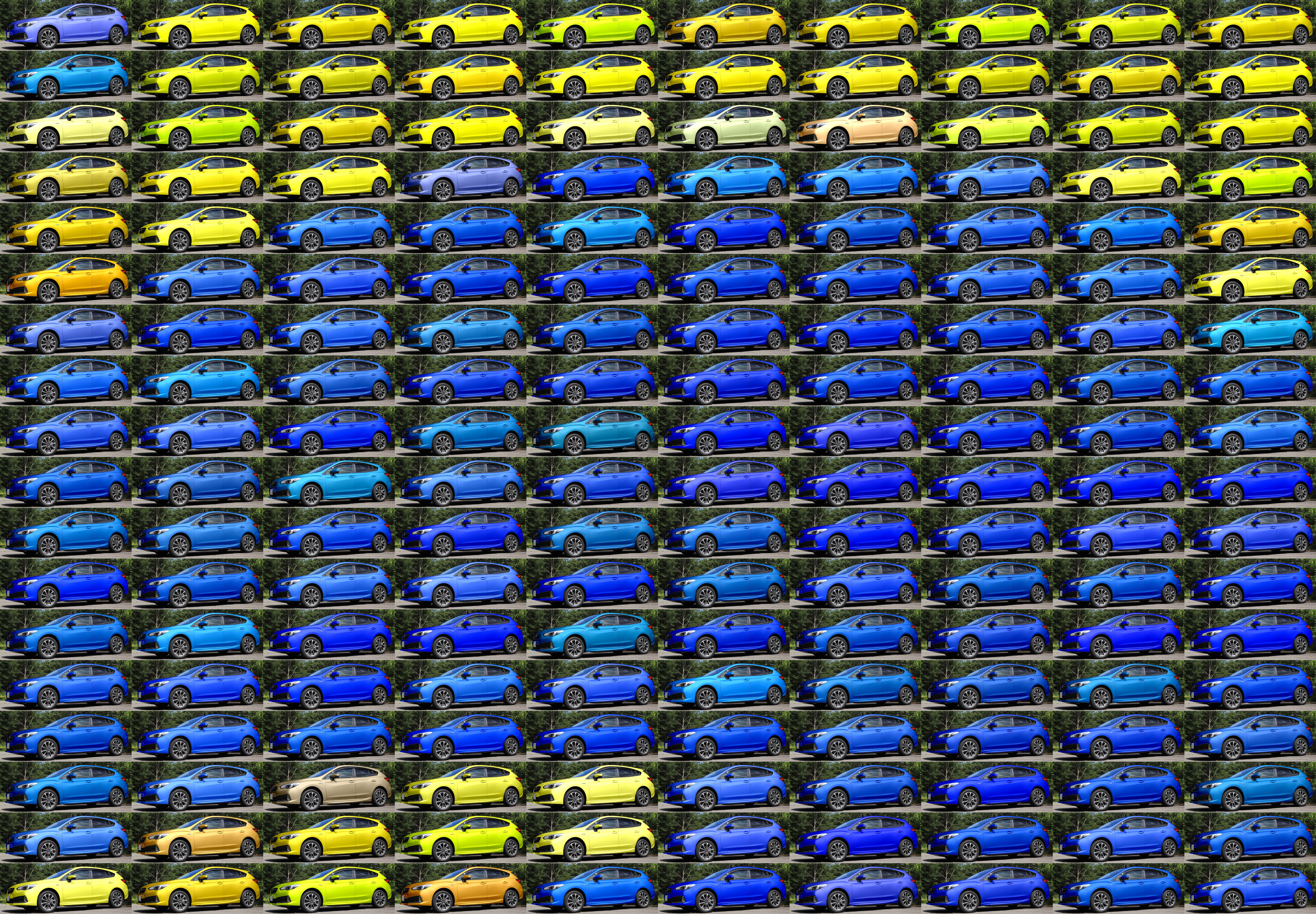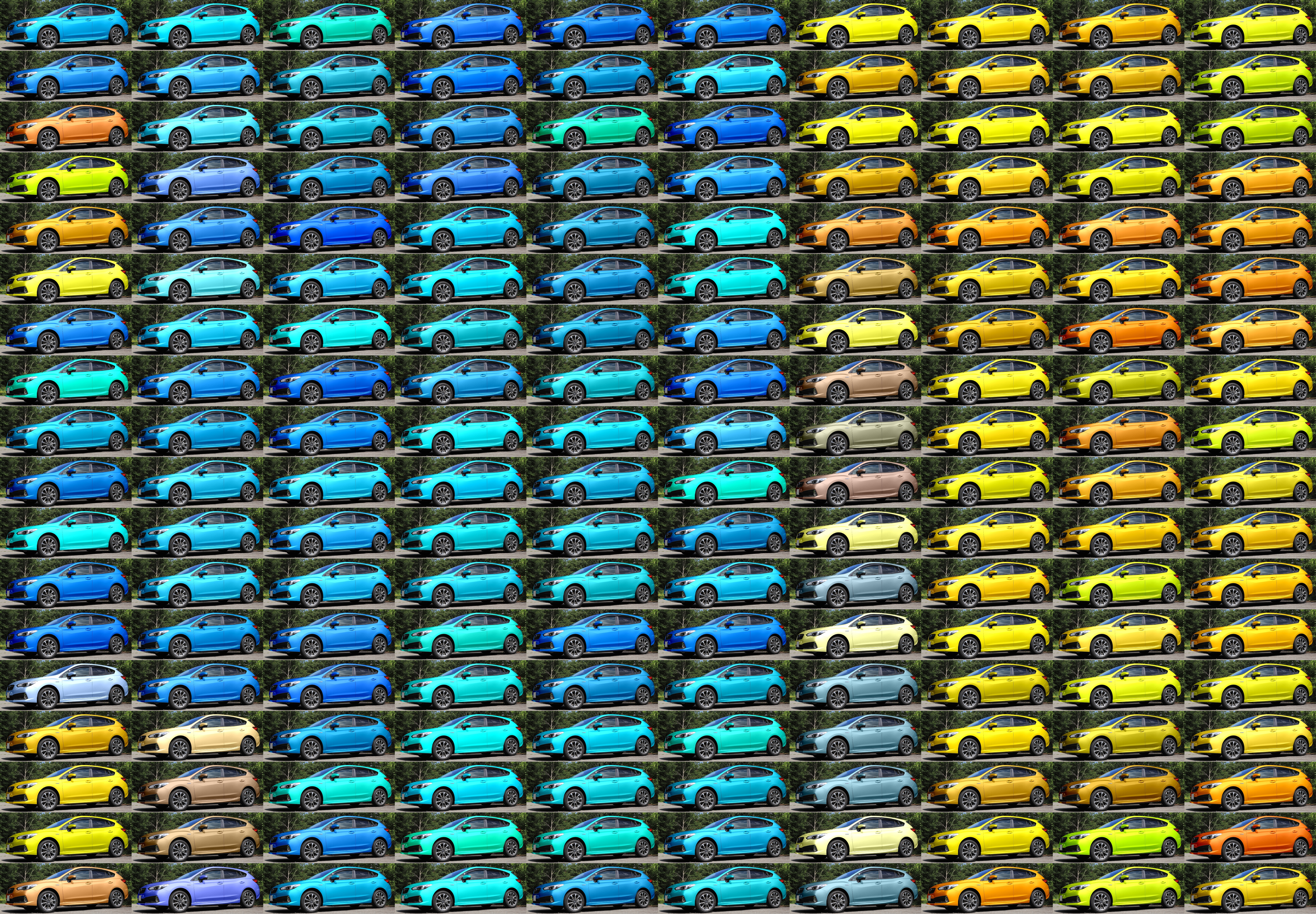 2014年ごろに私が開発した画像処理ソフト「似合いの色を探せ」でインプレッサの車体部分の色を塗り替え125色の車の画像を作ります。
