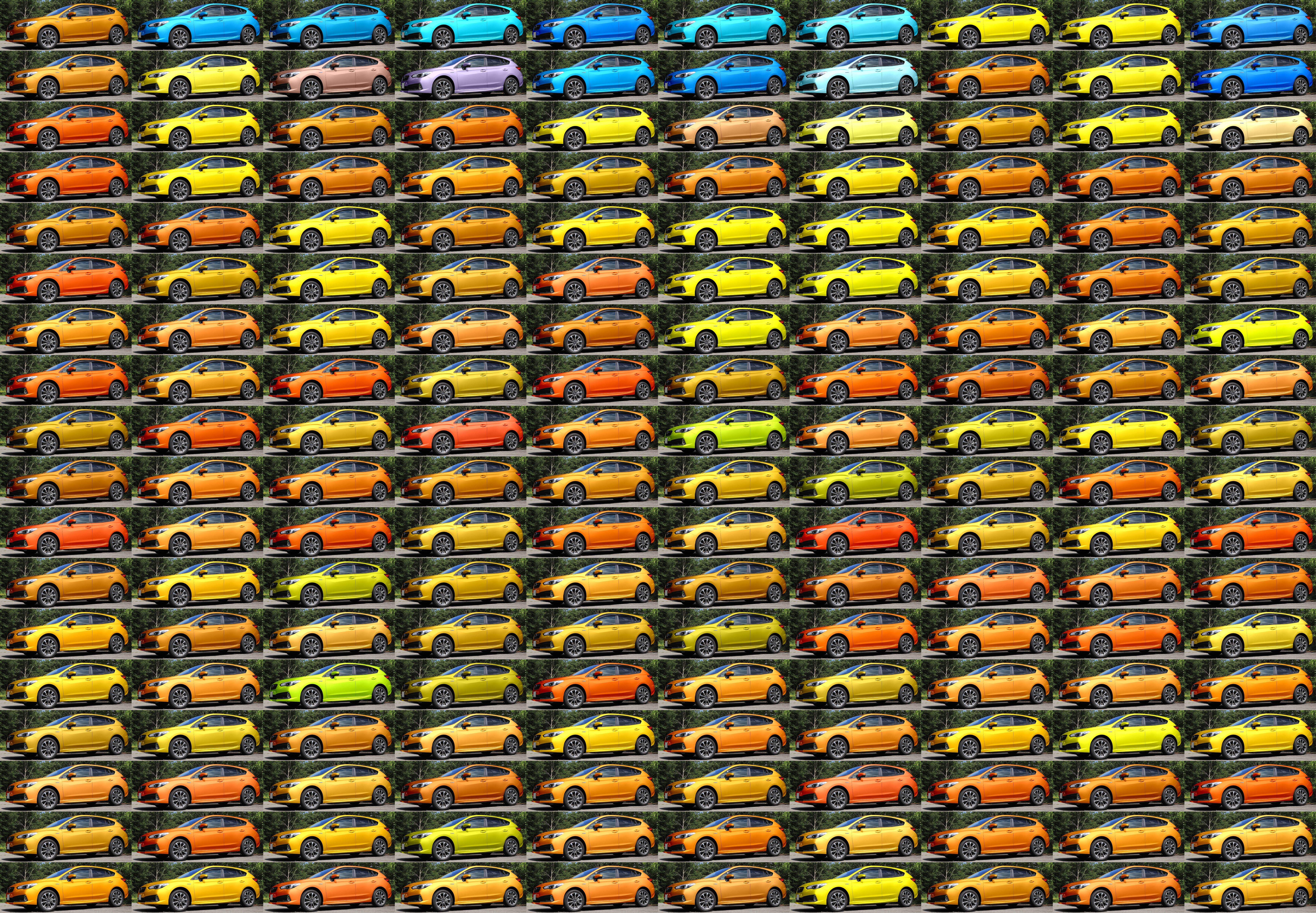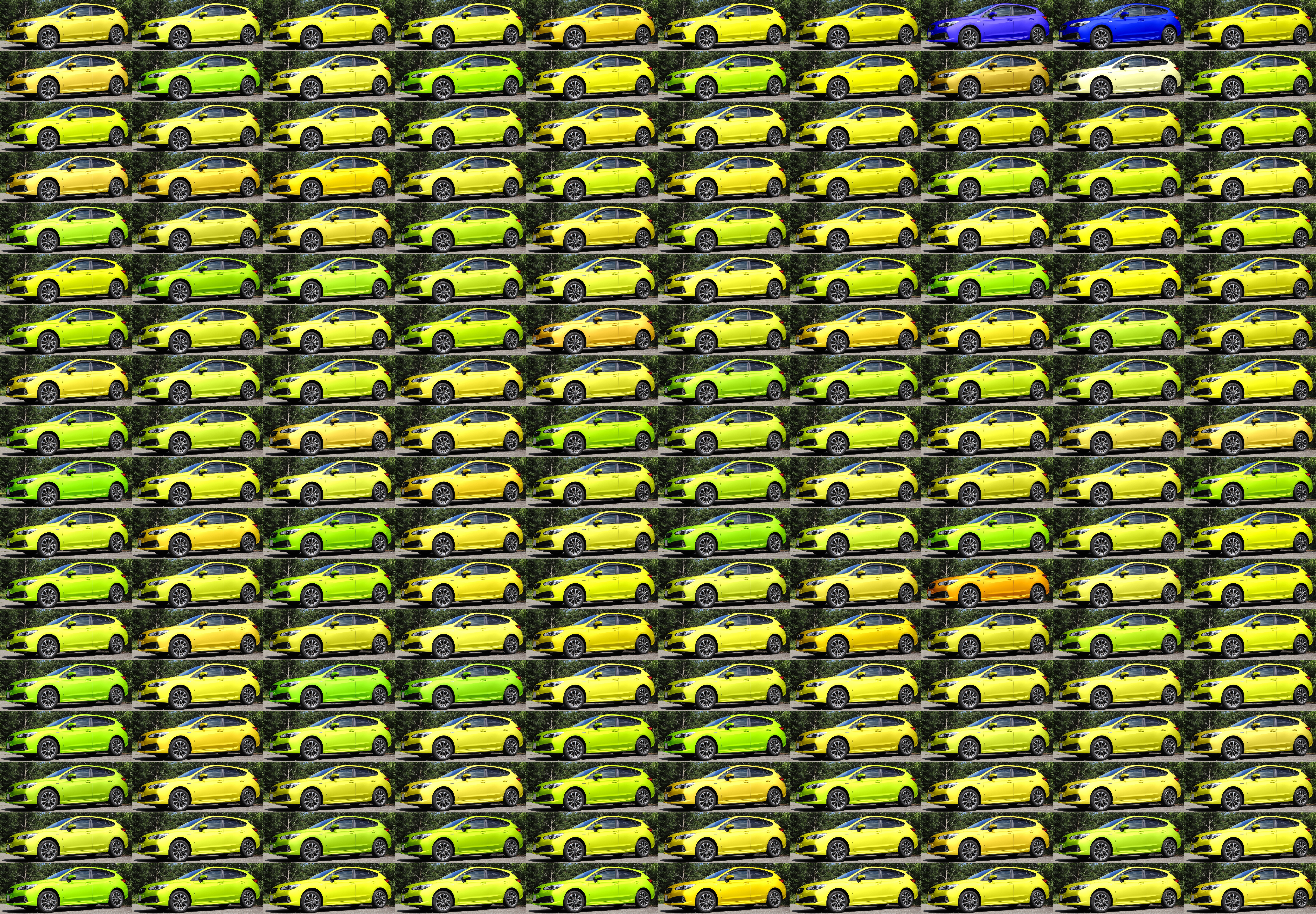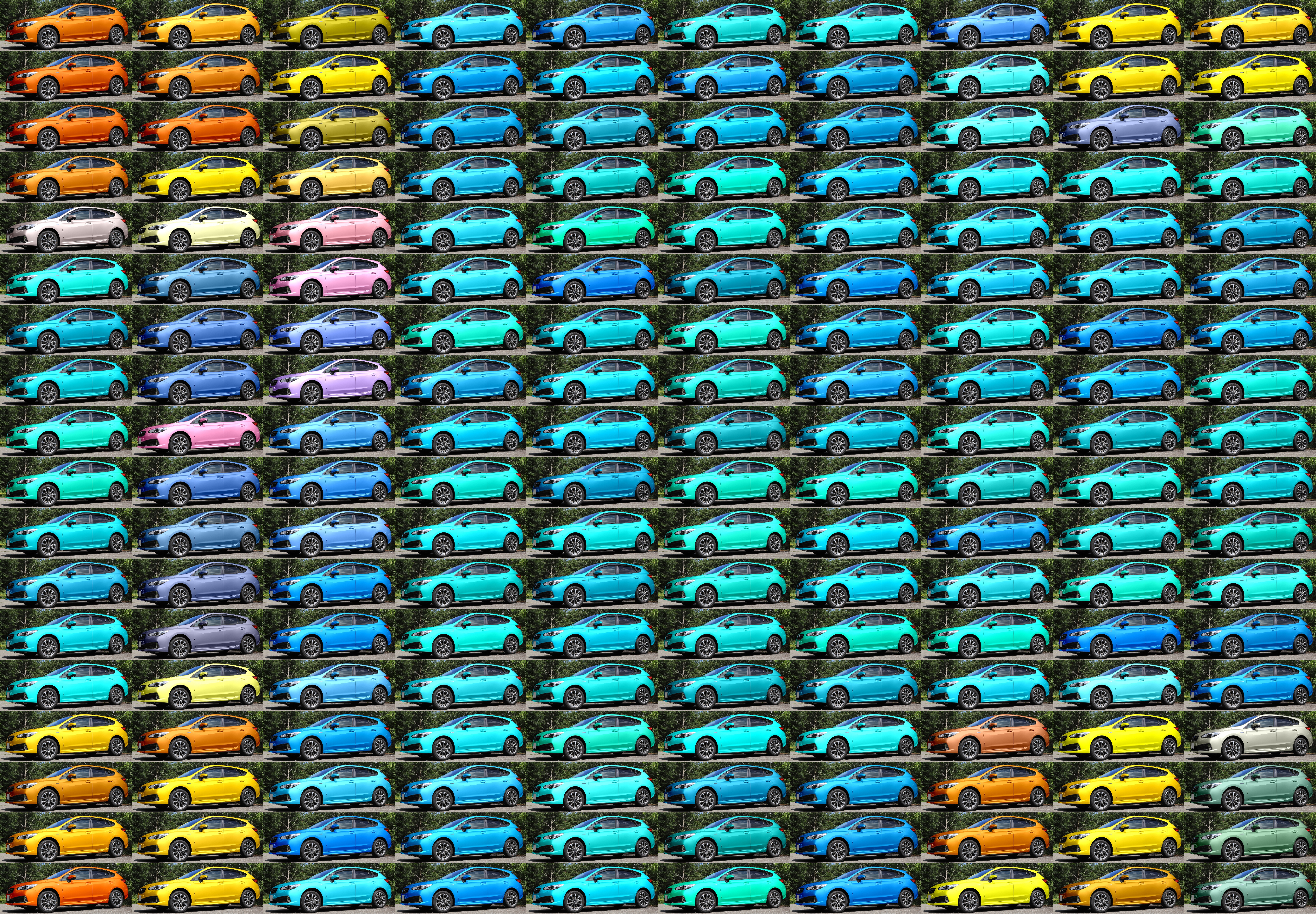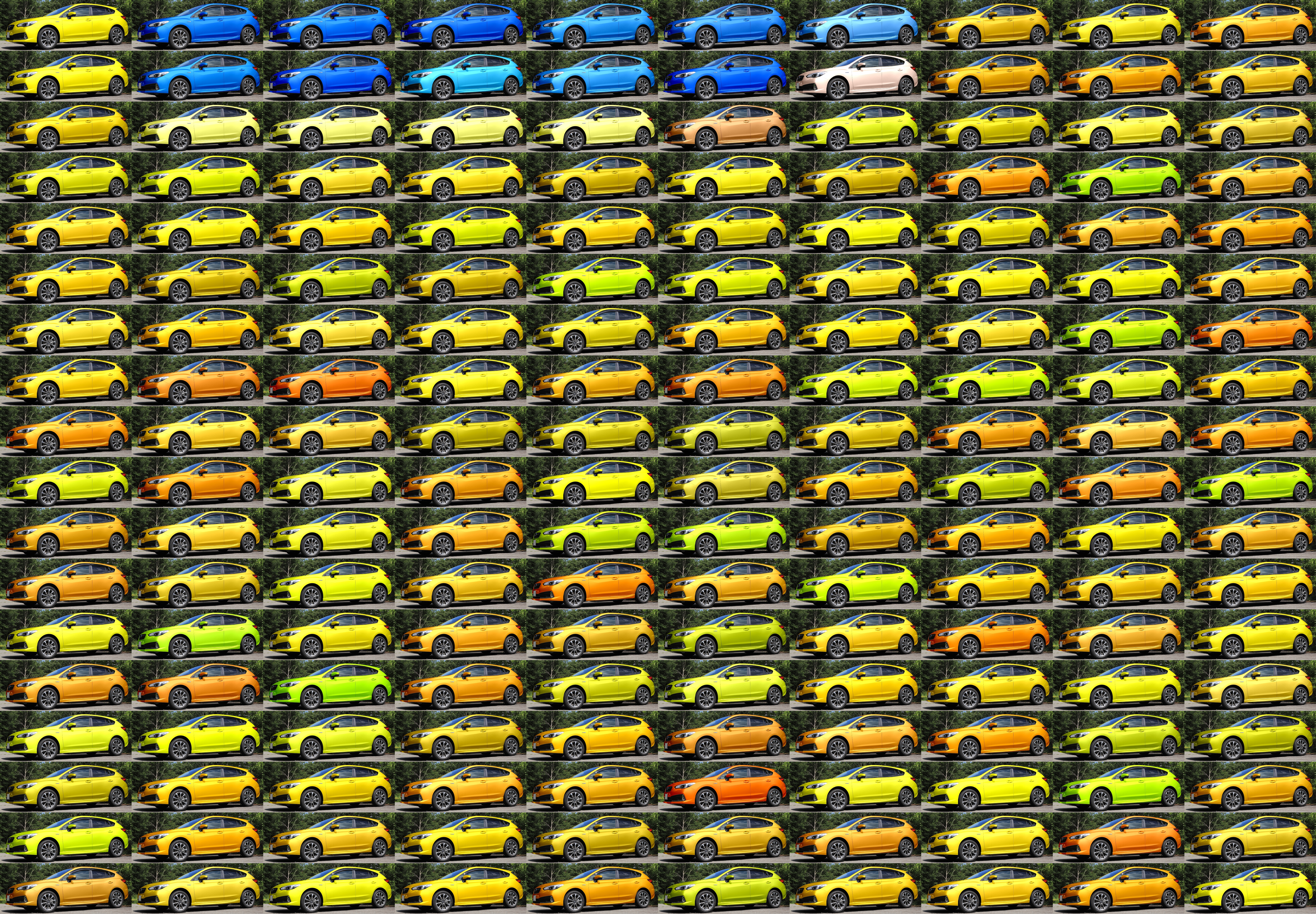 2014年ごろに私が開発した画像処理ソフト「似合いの色を探せ」でインプレッサの車体部分の色を塗り替え125色の車の画像を作ります。