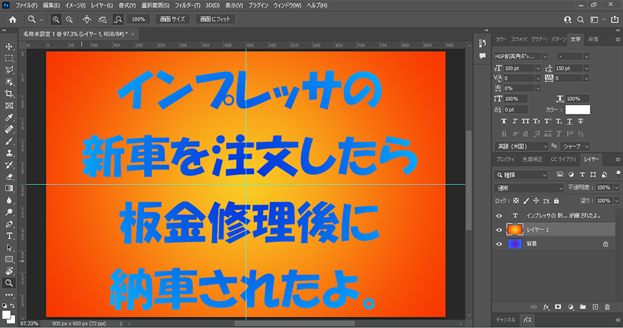 Adobe Photoshopで以下のような画像を作成しました。Photoshopの操作方法については詳しくは説明できませんので、真似される場合は各自頑張ってください。ポイントとしてはグラデーションツールを使用していることです。