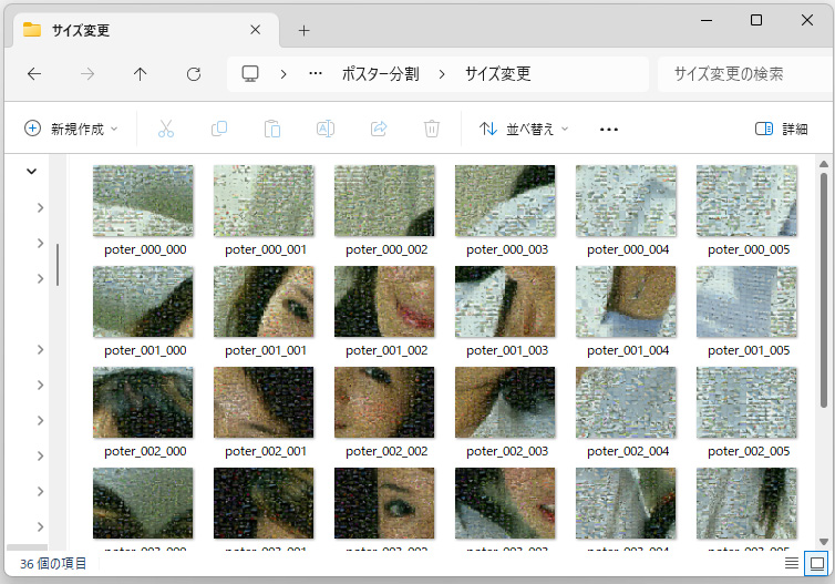 「フォトモザイク作成」の工程は以上になるのですが、「コマ画像の保存」の工程も同時にやってしまいました。